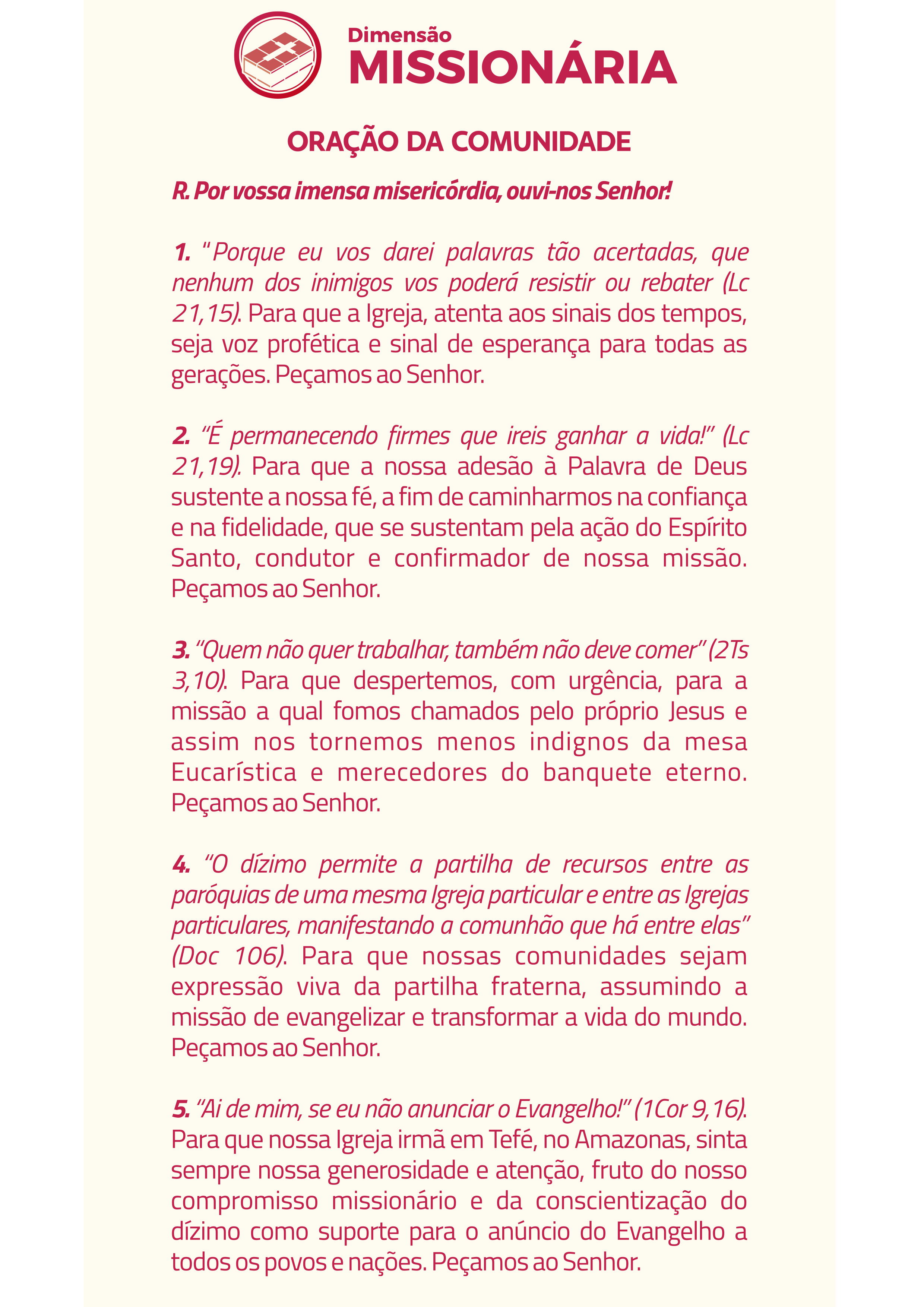 Por meio do dízimo, que é uma contribuição motivada pela fé, os fiéis vivenciam a comunhão, a participação e a corresponsabilidade na evangelização. O Dízimo é uma contribuição contínua na comunidade dos fiéis, no qual cada comunidade assume a sustentação da Igreja local. Tudo isso indica que ali existem pessoas que tiveram um encontro pessoal com Jesus Cristo (foram evangelizadas) e são comprometidas com o evangelho.
