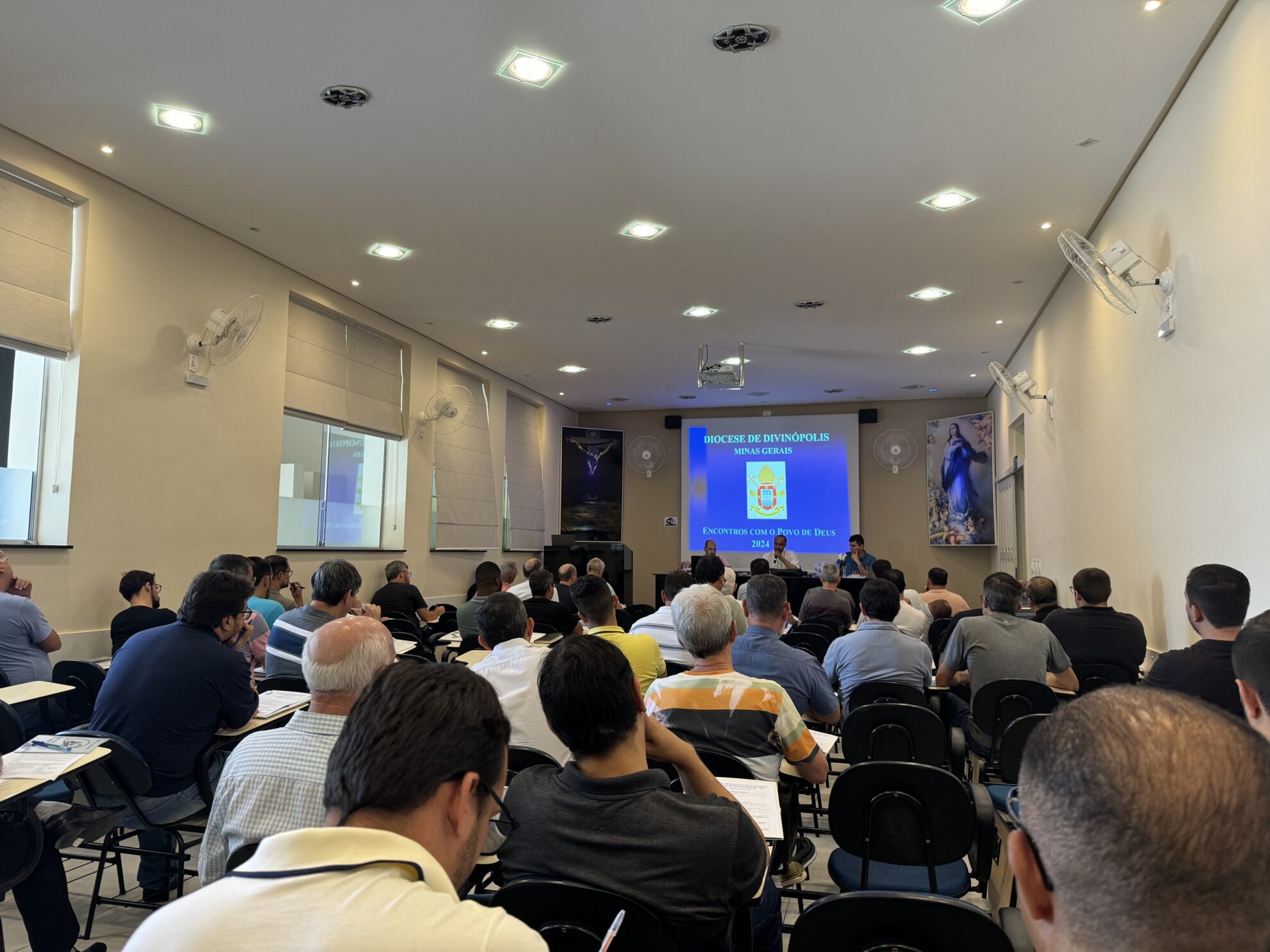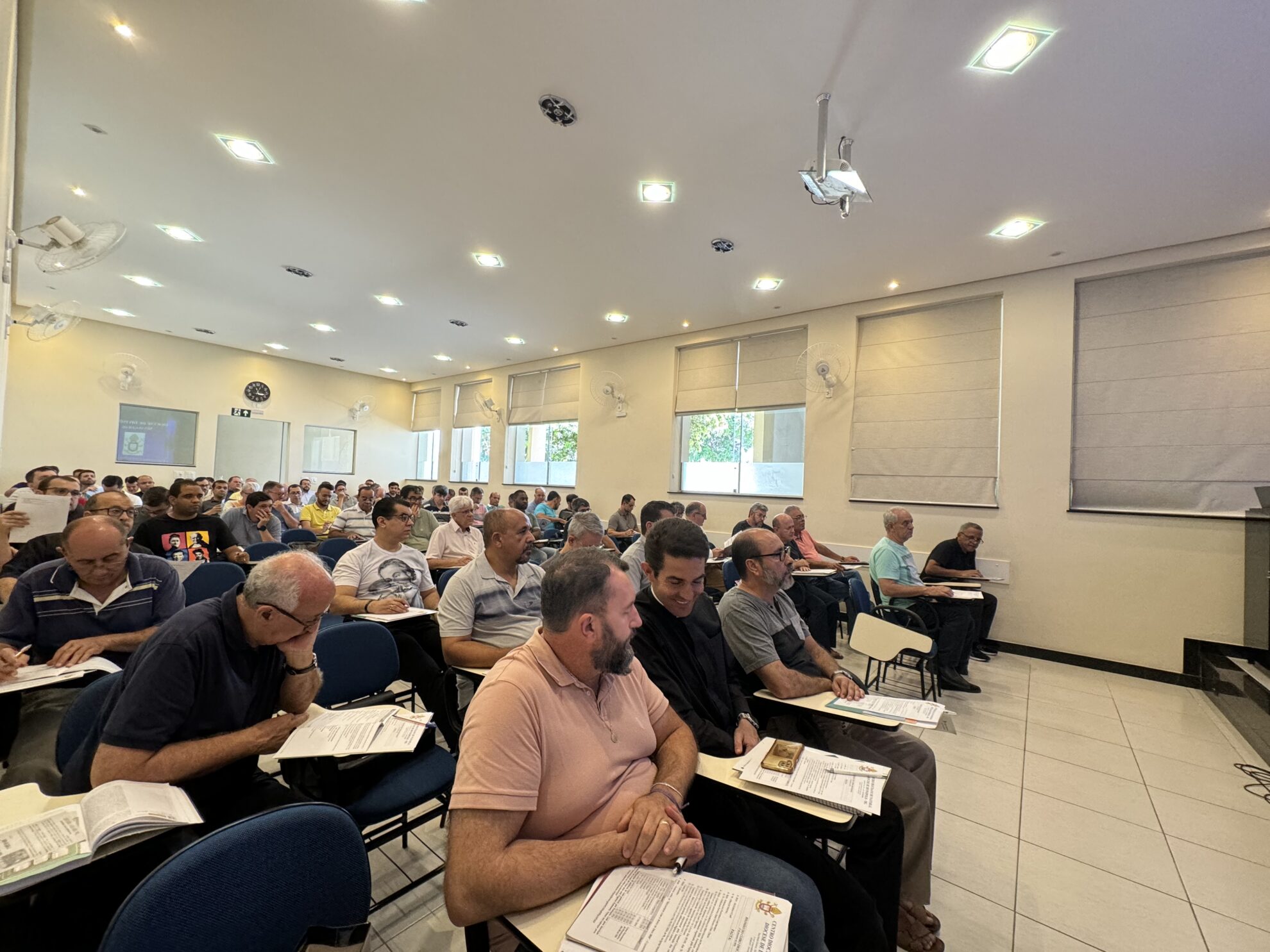 Nesta terça-feira (27/02), se reuniram na Cúria Diocesana, o bispo, os presbíteros e diáconos transitórios para a tradicional Reunião do Clero. Após a oração inicial na Capela da Cúria, os clérigos se digiriam ao auditório Imaculada Conceição para o inicio das tratativas. A pauta da reunião contou com exposição do trabalho realizado pela Pastoral Carcerária, com presença de Pe. Anderson Fonseca, assessor eclesiástico em nível diocesano e Irmã Nieves e Diácono Oscar, da Arquidiocese de Belo Horizonte.