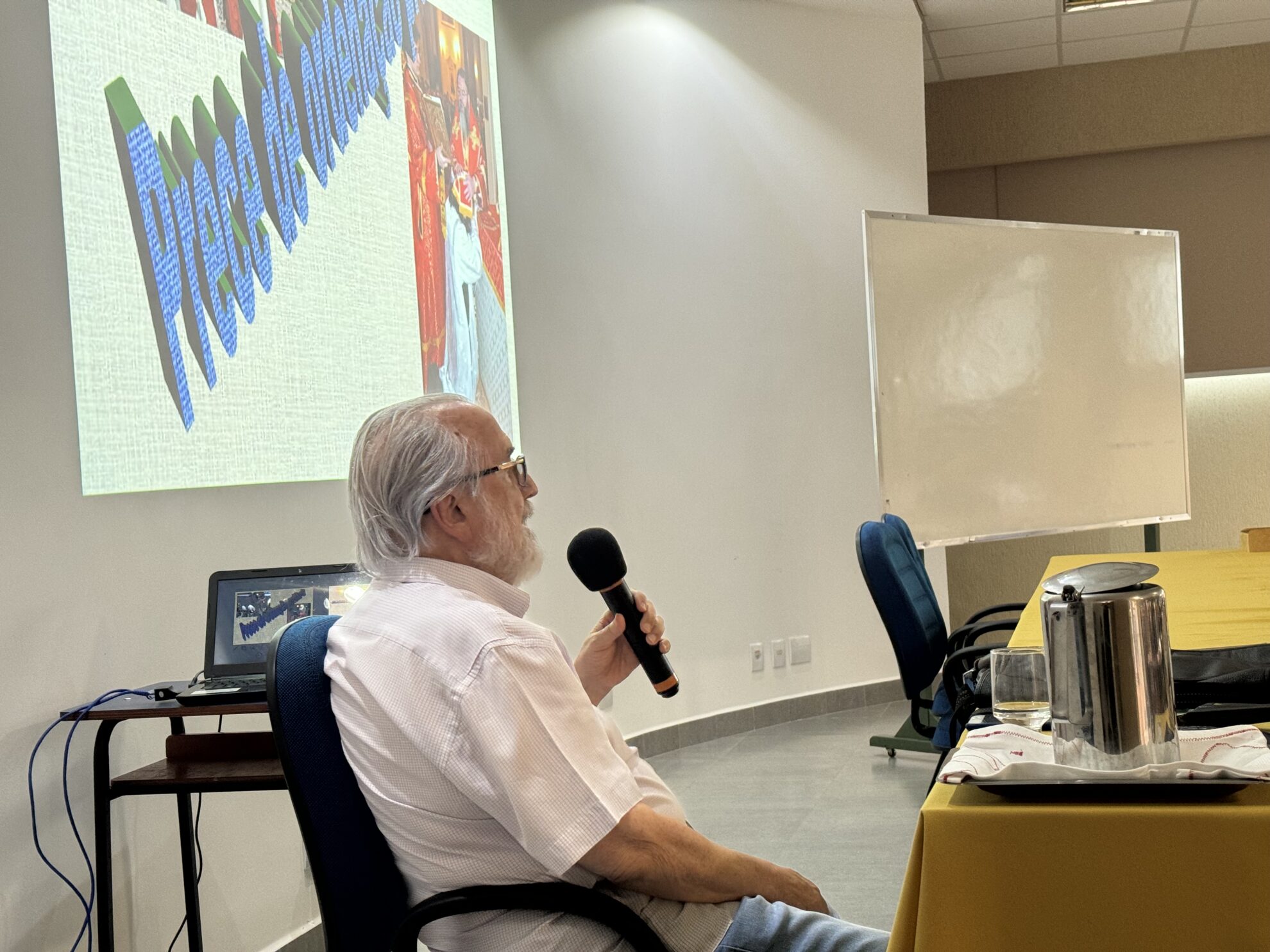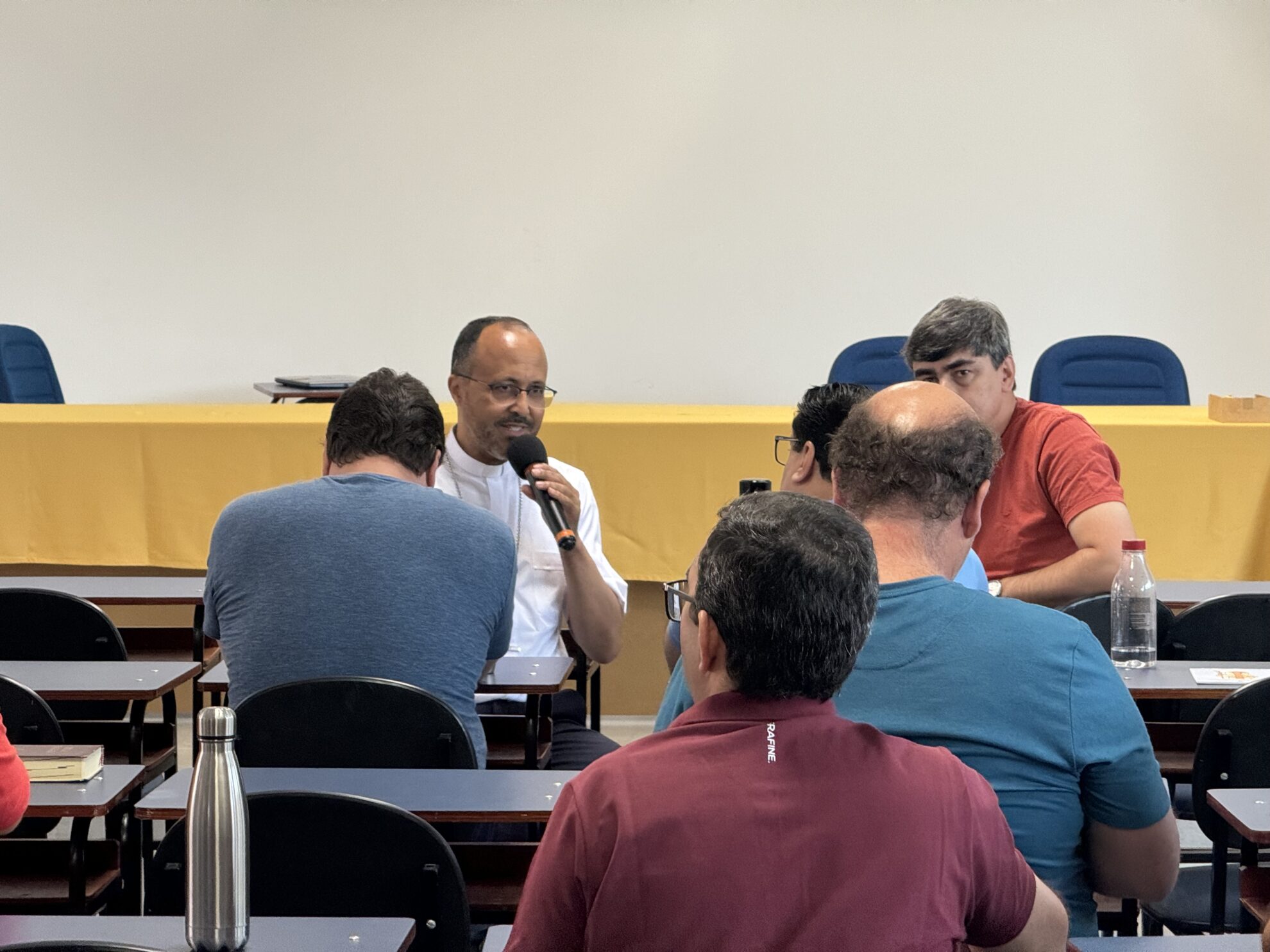 Na manhã do dia 07, quinta-feira, o Bispo, Padres e Diáconos tiveram a oportunidade de partilhar em pequenos grupos, as experiências e esperanças do exercício ministerial, à luz das reflexões apresentadas anteriormente pelo Pe. Taborda.