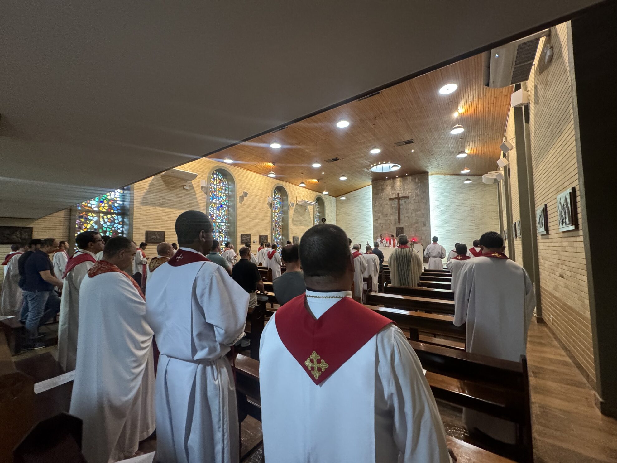 Iniciou-se o encontro com um momento de confraternização, no qual os clérigos puderam, espontânea e alegremente, partilhar entre si as alegrias e fadigas da vida ministerial, e estreitar seus laços amistosos/afetivos.