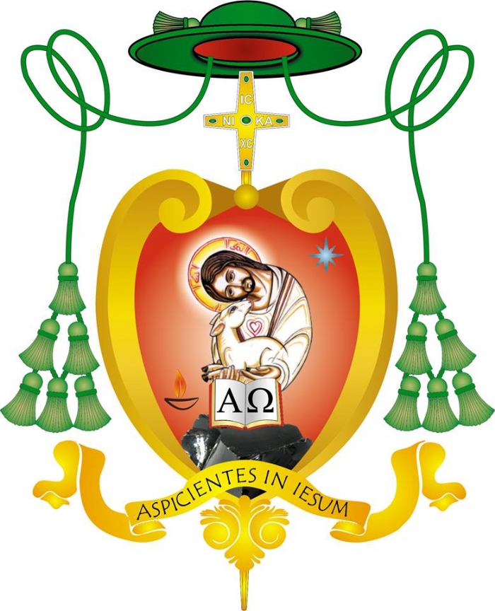 Em latim “ASPICIENTES IN IESUM” (em português: “Com os olhos fitos em Jesus”) recorda três passagens da Escritura, nas quais o Bispo busca a certeza da proximidade de Deus na condução do seu ministério: Salmo 15,8 (“Ponho meus olhos no Senhor, com ele não vacilarei.”); Salmo 25,15 (“Meus olhos estão fitos no Senhor, pois Ele tirará meus pés das armadilhas.”) e Hebreus 12,2, donde se tira o lema: “Com os olhos fitos em Jesus, iniciador e consumador de nossa fé.”