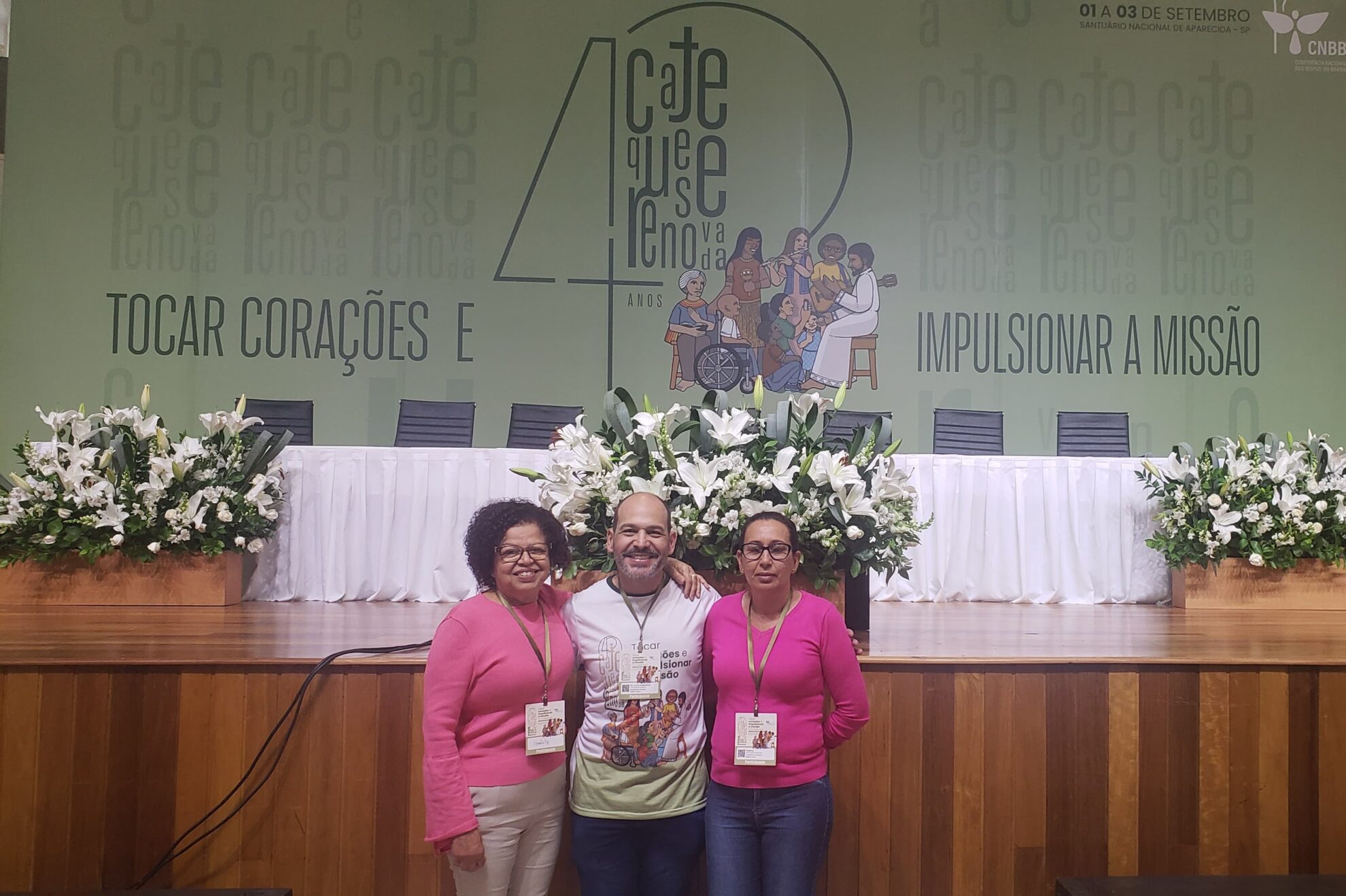 A Diocese de Divinópolis se faz presente, em Aparecida/SP, na comemoração dos 40 anos do Documento Catequese Renovada. De 1 a 3 de setembro, catequistas do Brasil, mais de 1000, estão refletindo sobre “Contexto e Memória”, “Questões Pastorais” e Perspectivas” para a Catequese. Tudo isso com o desejo de “Tocar corações e impulsionar a missão”. Participam desse encontro: Pe. Lúcio (Coordenador Diocesano de Pastoral), Salete (Forania Divino Espírito Santo), Meire Forania Santo Antônio) e Estefânia (Forania Imaculada Conceição). Que esse tempo seja fecundo para a nossa Diocese.