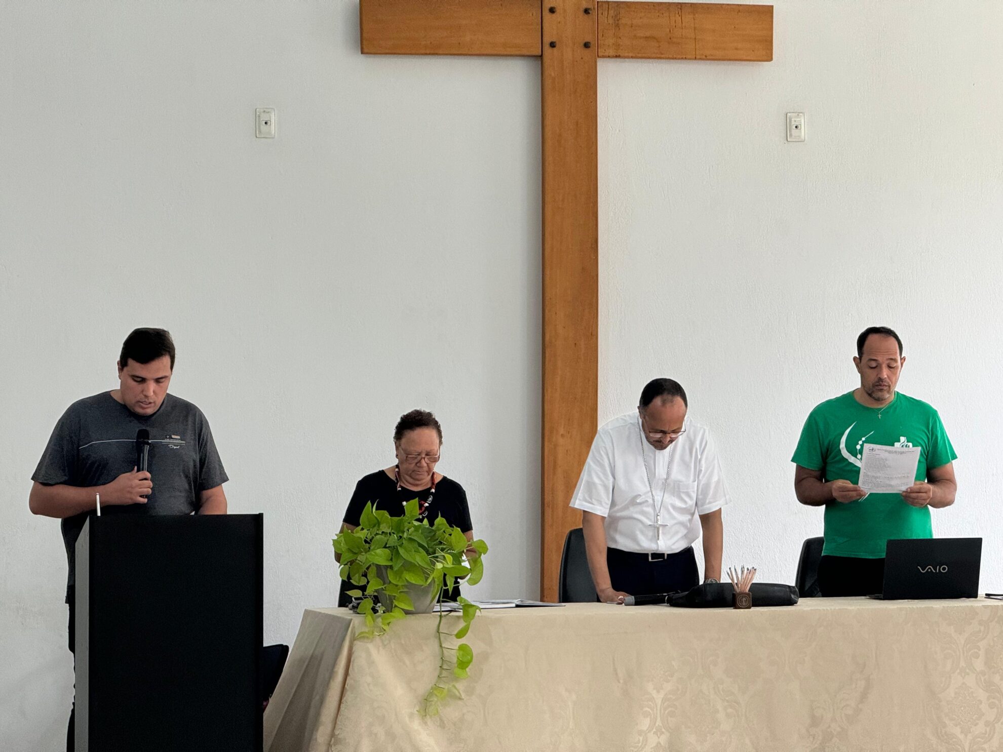 A abertura foi às 8h30 com as informações do Conselho Episcopal Regional, que teve recentemente uma reunião ampliada com presença dos coordenadores de pastoral, representante dos presbíteros e uma leiga, que compartilharam a experiência.