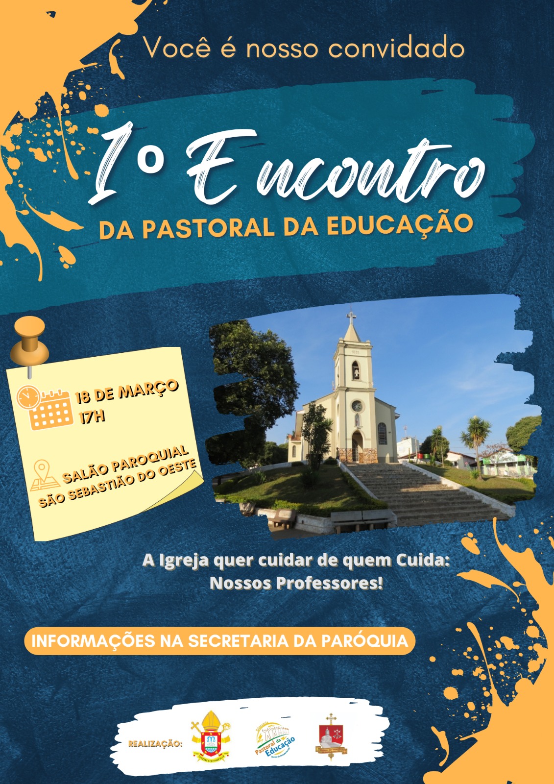 O primeiro encontro acontecerá no dia 18 de março de 2023, às 17 horas com término previsto para às 18h45 no salão paroquial. Em seguida aqueles que puderem se dirigirão a Santa Missa na Matriz, a qual acontece às 19h. Todos os professores, educadores, pessoas que estão inseridas no âmbito da educação, estão convidadas a participar deste momento celebrativo na paróquia São Sebastião e na diocese de Divinópolis.