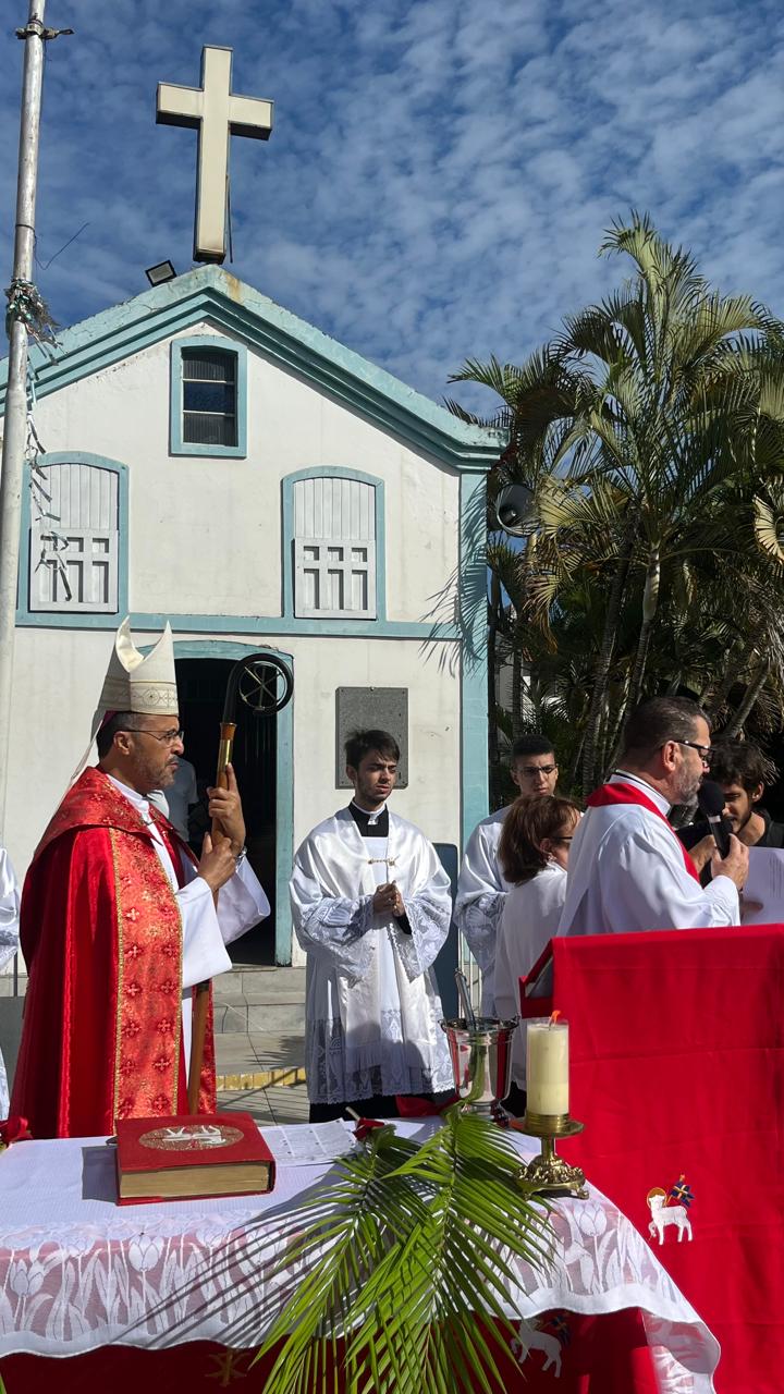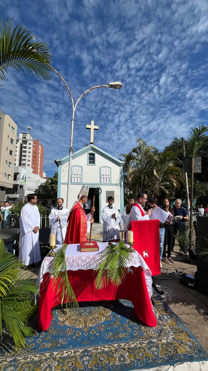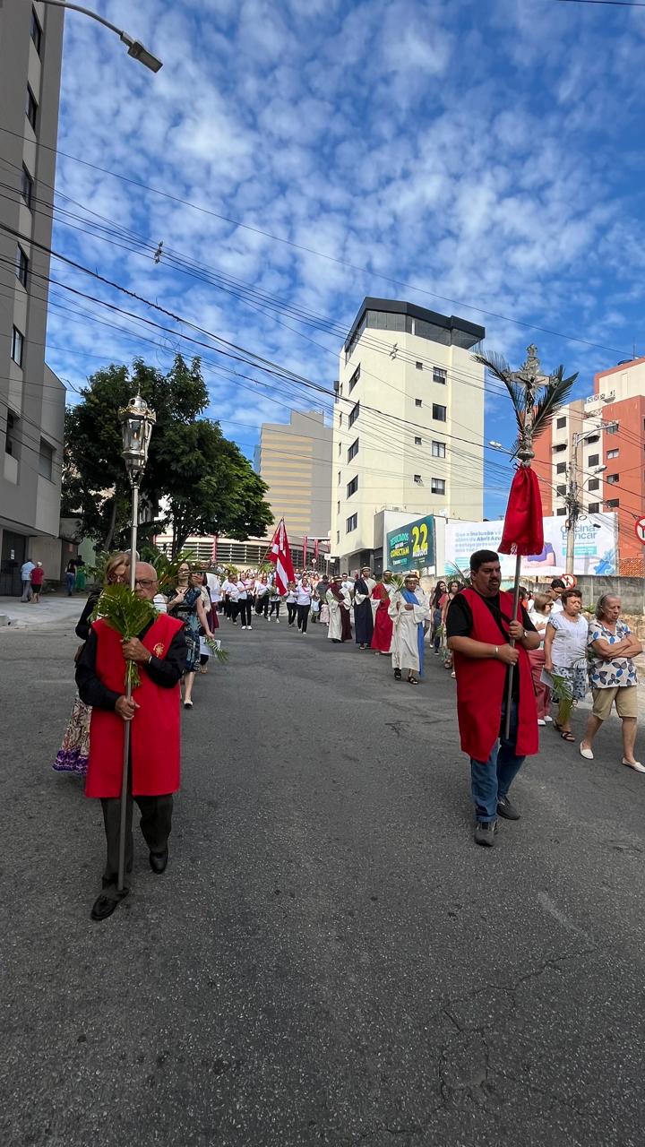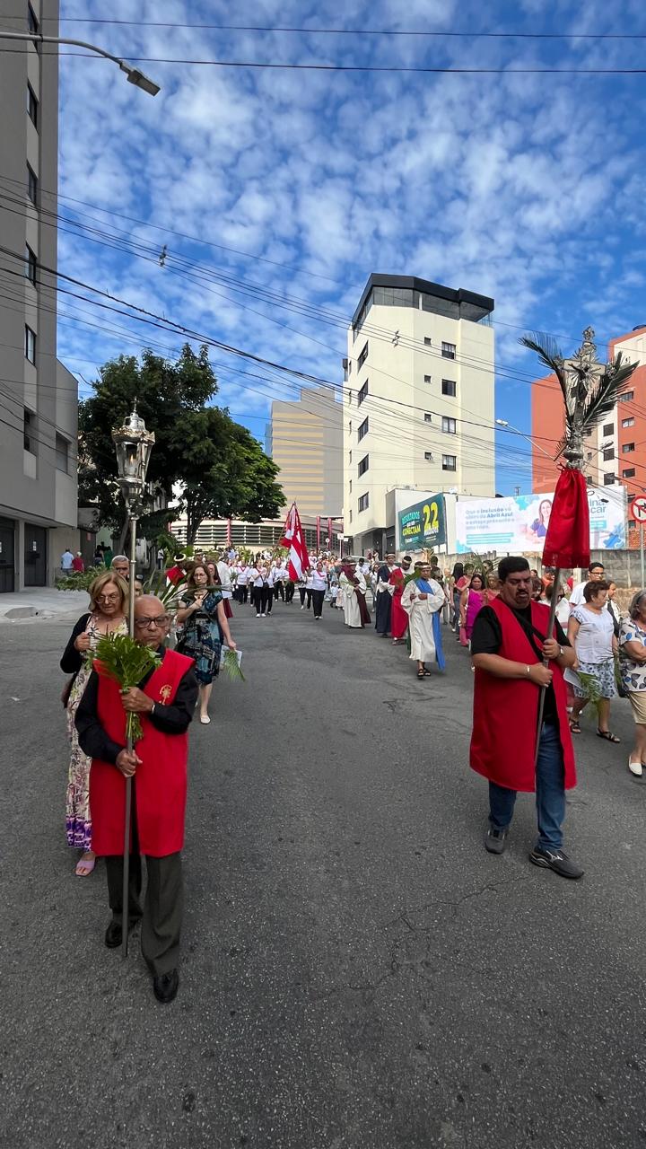 Começou ontem (14/04) , a Semana Santa, ápice da fé católica, e o bispo diocesano, Dom Geovane Luís da Silva, participou da tradicional benção de ramos realizada em frente à Capela do Rosário, na Praça do Mercado, no Centro de Divinópolis. A benção realizada às 9h da manhã reuniu dezenas de pessoas, que com ramos e cânticos seguiram em procissão até a Catedral do Divino Espírito Santo, onde foi celebrada a missa. No Domingo de Ramos, são lidos dois Evangelhos, o primeiro que relembra a entrada triunfal de Jesus em Jerusalém, e o segundo da Paixão e Morte.