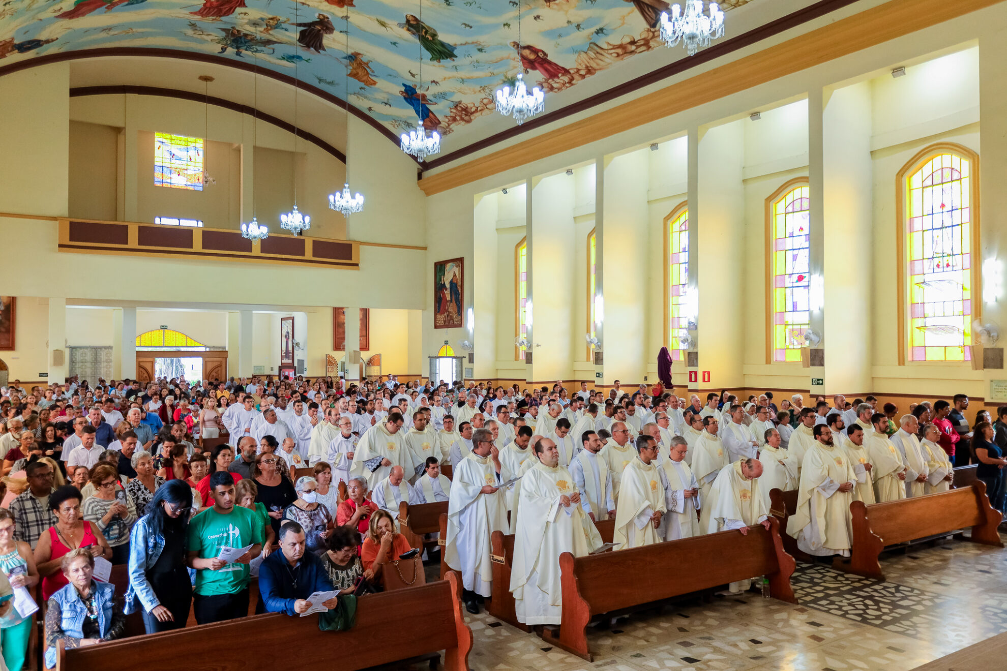 A celebração eucarística contou com a presença dos padres e diáconos, religiosos e religiosas, seminaristas, candidatos ao Diaconato Permanente e representantes das 54 paróquias da Diocese.