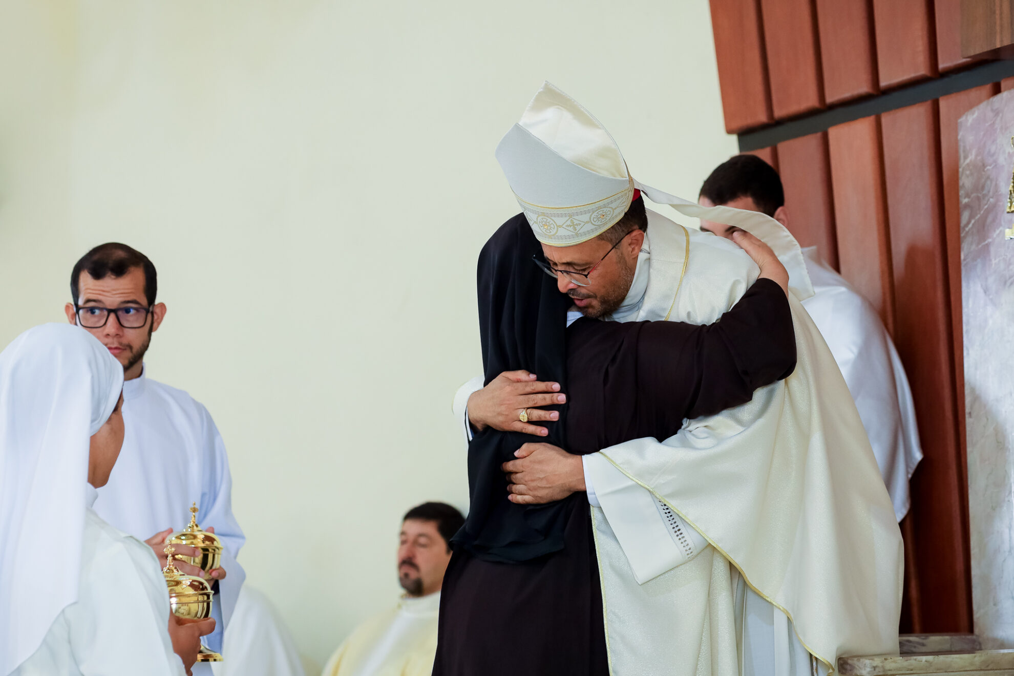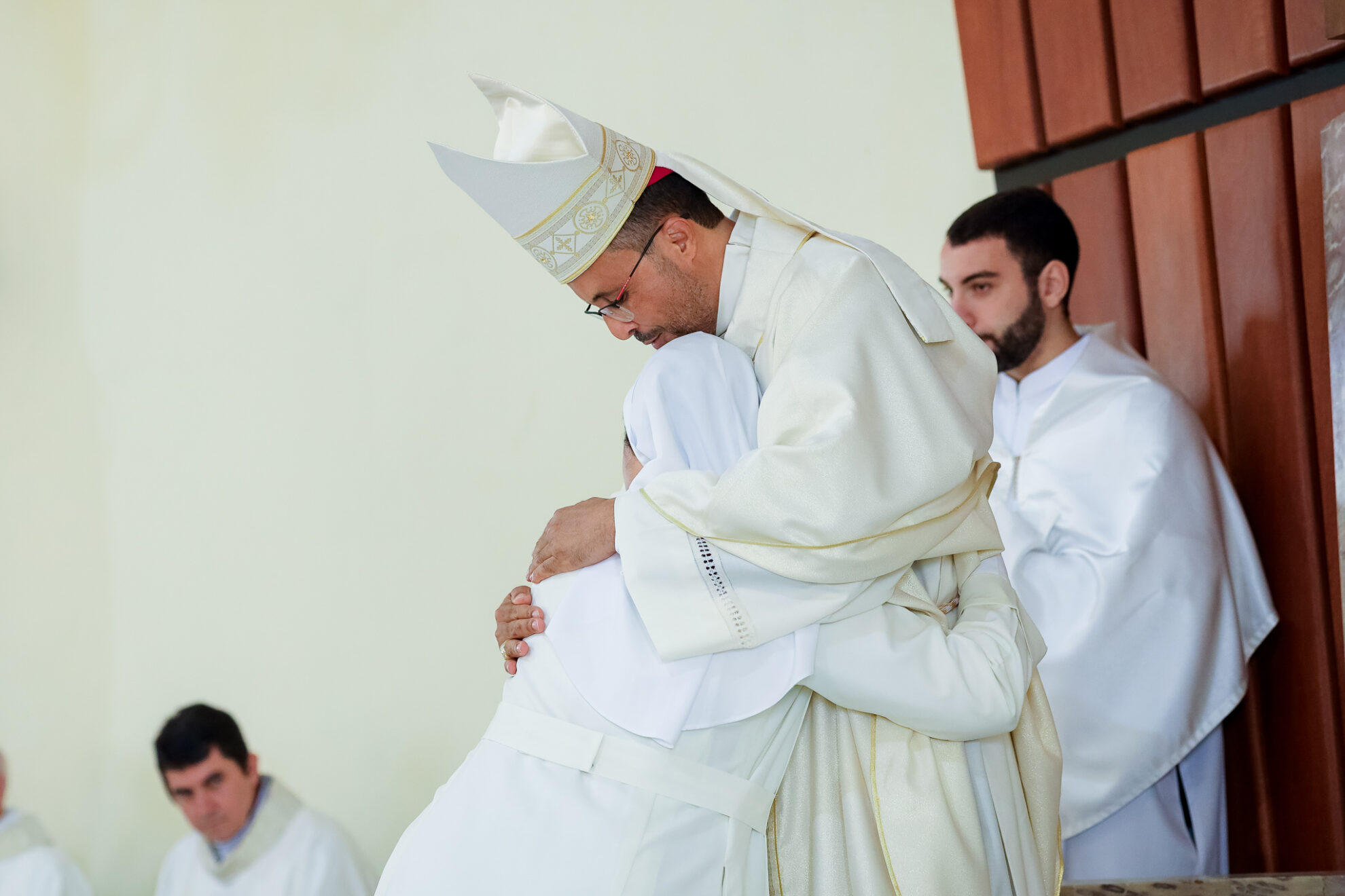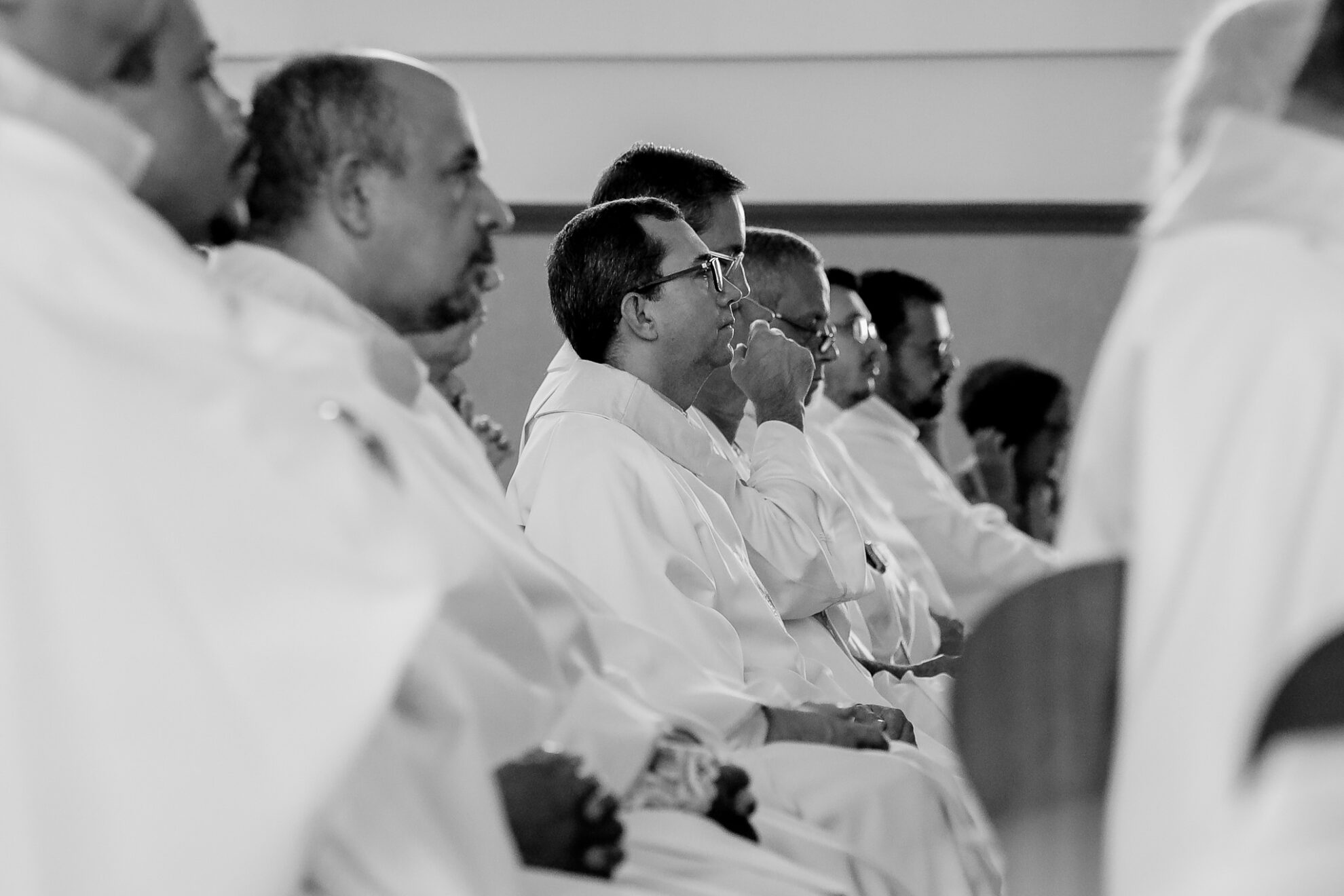 no trecho do evangelho que foi proclamado a pouco, ouvimos São Lucas afirmar que todas as pessoas que estavam na sinagoga tinham os olhos fixos em Jesus. Mas se prosseguirmos a leitura dos versículos seguintes veremos que o encanto pela pregação de Jesus na sinagoga foi passageiro, pois o Mestre não se deixou prender pelos interesses mesquinhos de seus conterrâneos. Ao final os nazarenos queriam lançar Jesus no precipício. Ele, porém, passando pelo meio deles, continuou o seu caminho. Caros presbíteros, coragem! Anunciemos o Evangelho mesmo em meio aos possíveis fracassos e incompreensões. Na sinagoga de Nazaré, o ministério de Jesus não teve êxito, a Palavra não foi ouvida.