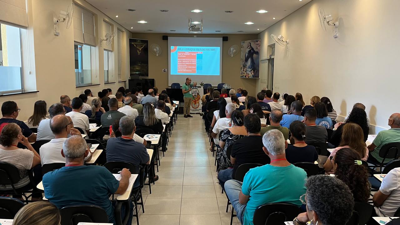 Foi realizado neste domingo (30/03), pelo Conselho Diocesano de Leigos, na Cúria Diocesana em Divinópolis, o Encontro com o Povo de Deus. Foram convocados dois membros de cada paróquia do Conselho Paroquial (CPP) e dois membros de cada pastoral e movimento diocesano, reunindo assim, representantes das 54 paróquias, presentes nas 25 cidades que compõem a Diocese de Divinópolis. O objetivo é recordar o caminho percorrido, rever a ação evangelizadora e também projetar a agenda pastoral para 2025. O encontro foi aberto por Padre Lúcio Camargos, que recepcionou os leigos e falou da importância de cada um no projeto de Deus.