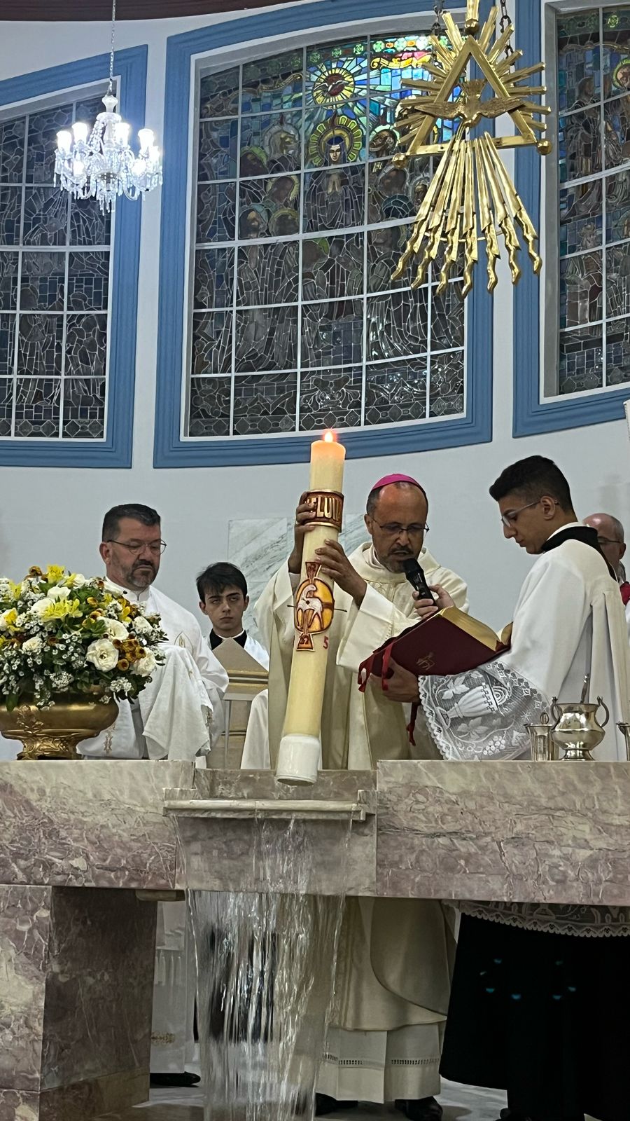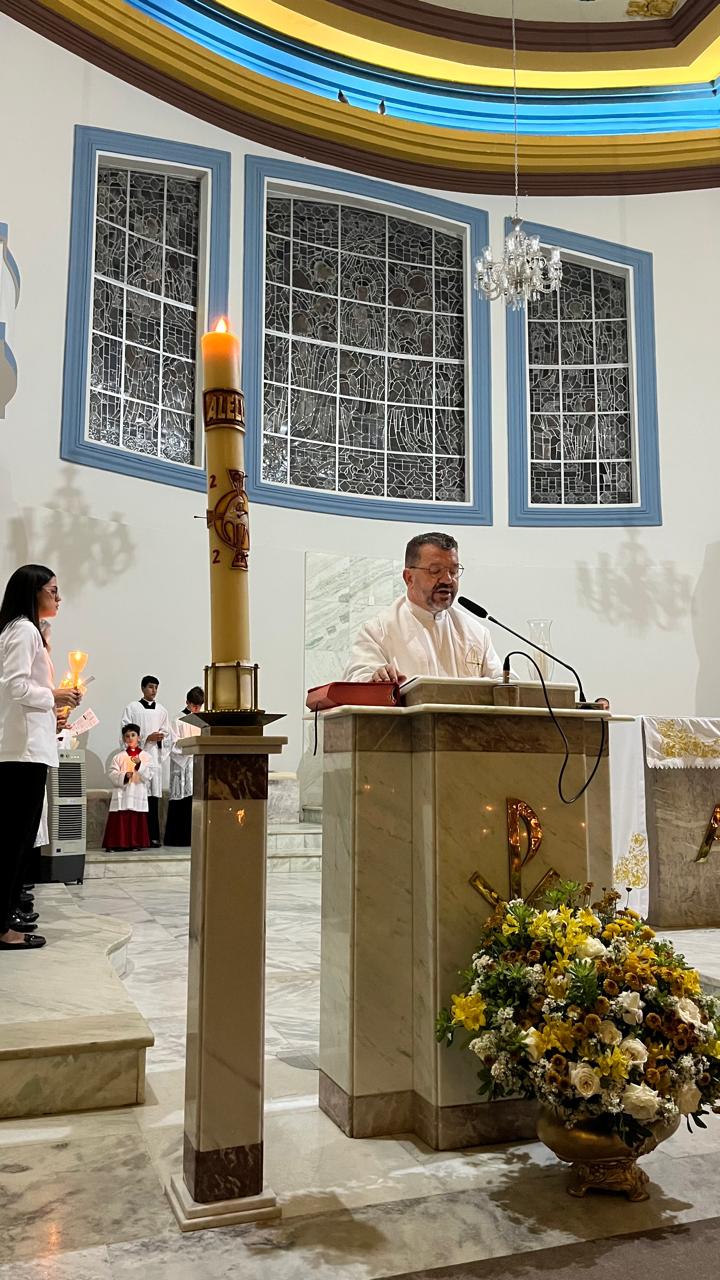 Dom Geovane, acompanhado de Padre Edmar,pároco da Catedral, realizaram ainda os demais ritos que são costume na celebração da Vigília, entre eles a benção da água do batismo, para arpergir os presentes que renovaram as promessas batismais. Nessa noite, são proclamadas nove leituras, contando com o Evangelho, pois retrata toda a história da salvação até a ressurreição de Jesus. Deus salvou o povo de Israel e agora nesse tempo salva a nós, também.