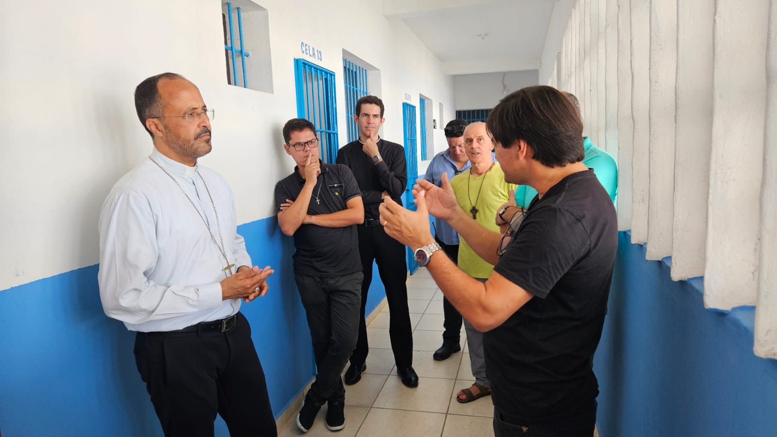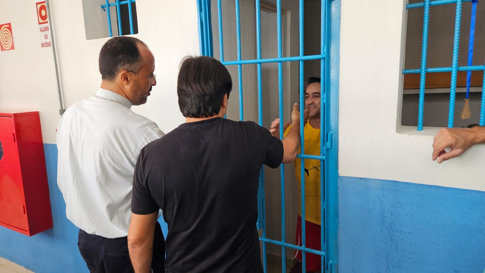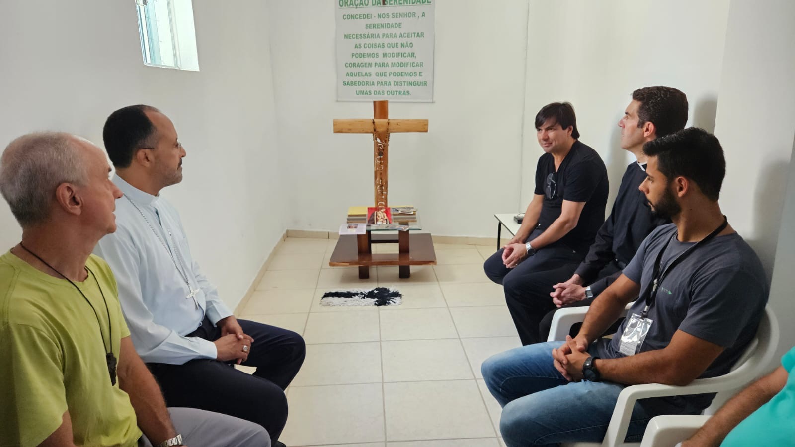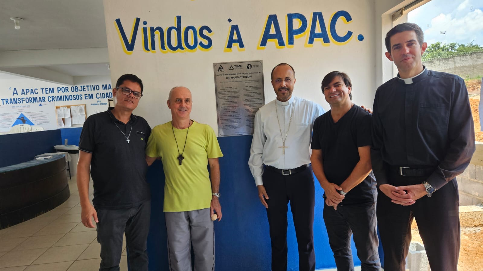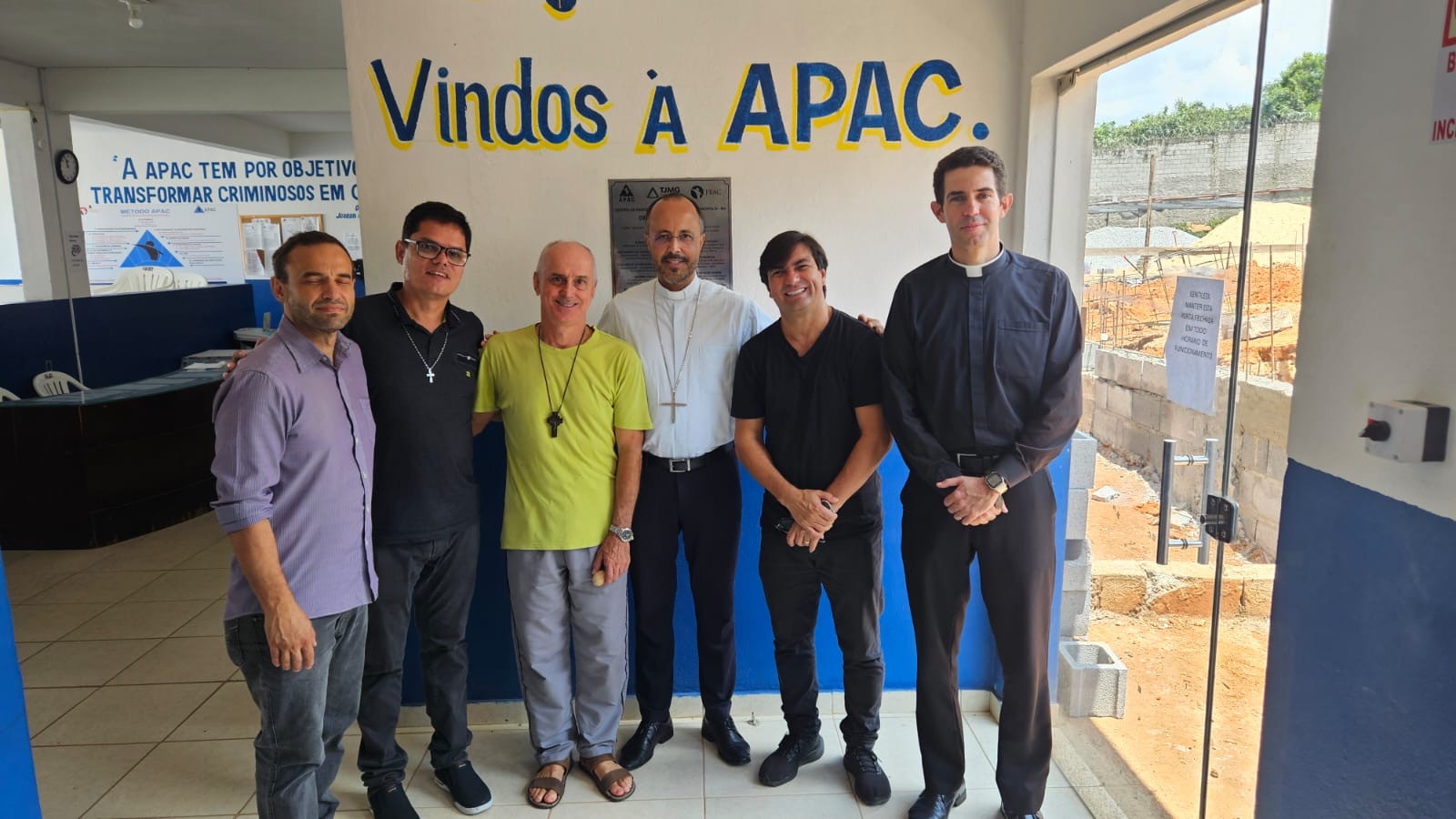 Na manhã de hoje, Dom Geovane, Pe. Anderson, os jovens Max e Eduardo, foram acolhidos pela família Apac. Após visita às dependências da casa, que atualmente acolhe 108 pessoas privadas de liberdade, Dom Geovane dirigiu sua palavra à Diretoria e em seguida encontrou-se com todos os recuperandos que residem naquela comunidade prisional. As visitas têm em vista fortalecer a ação pastoral da Igreja junto aos irmãos e Irmãs encarcerados.