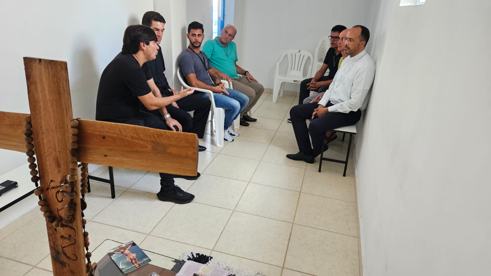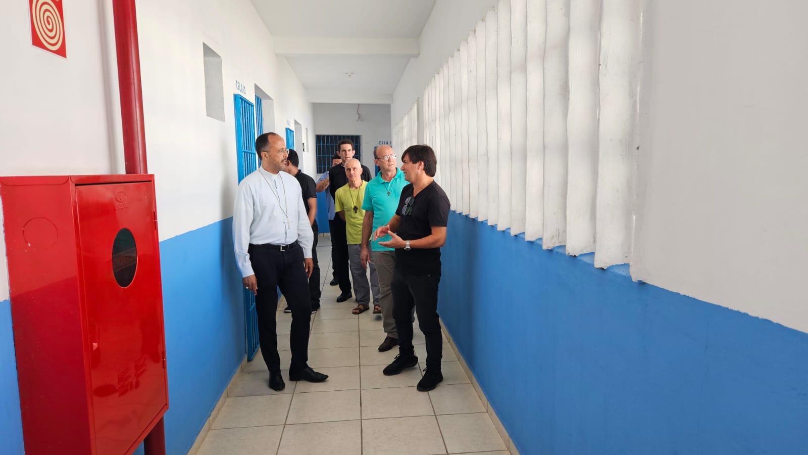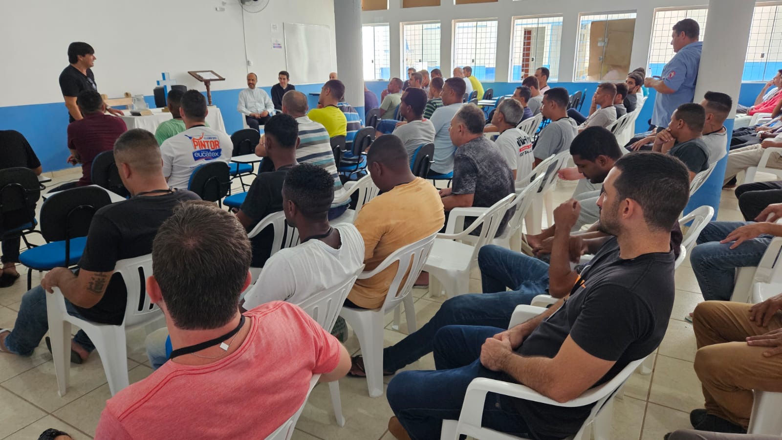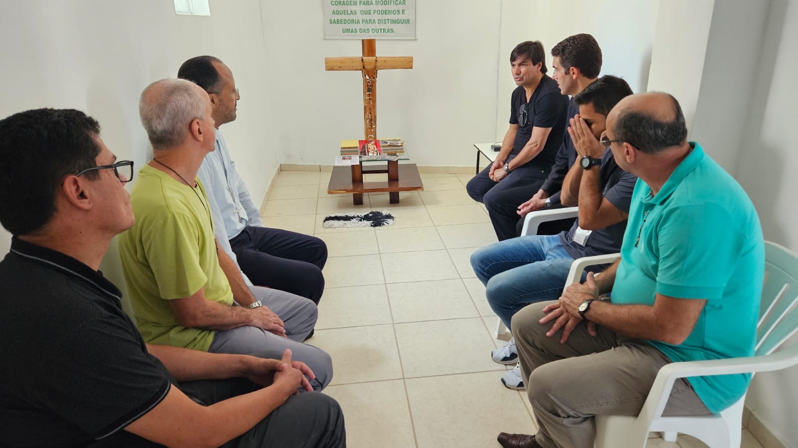 Na manhã de hoje, Dom Geovane, Pe. Anderson, os jovens Max e Eduardo, foram acolhidos pela família Apac. Após visita às dependências da casa, que atualmente acolhe 108 pessoas privadas de liberdade, Dom Geovane dirigiu sua palavra à Diretoria e em seguida encontrou-se com todos os recuperandos que residem naquela comunidade prisional. As visitas têm em vista fortalecer a ação pastoral da Igreja junto aos irmãos e Irmãs encarcerados.