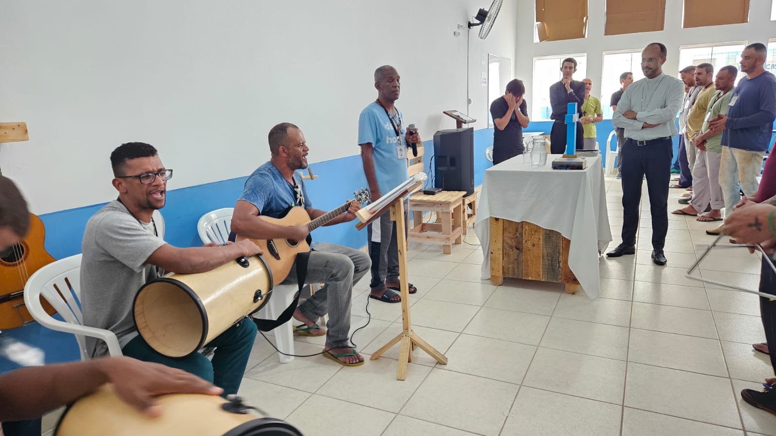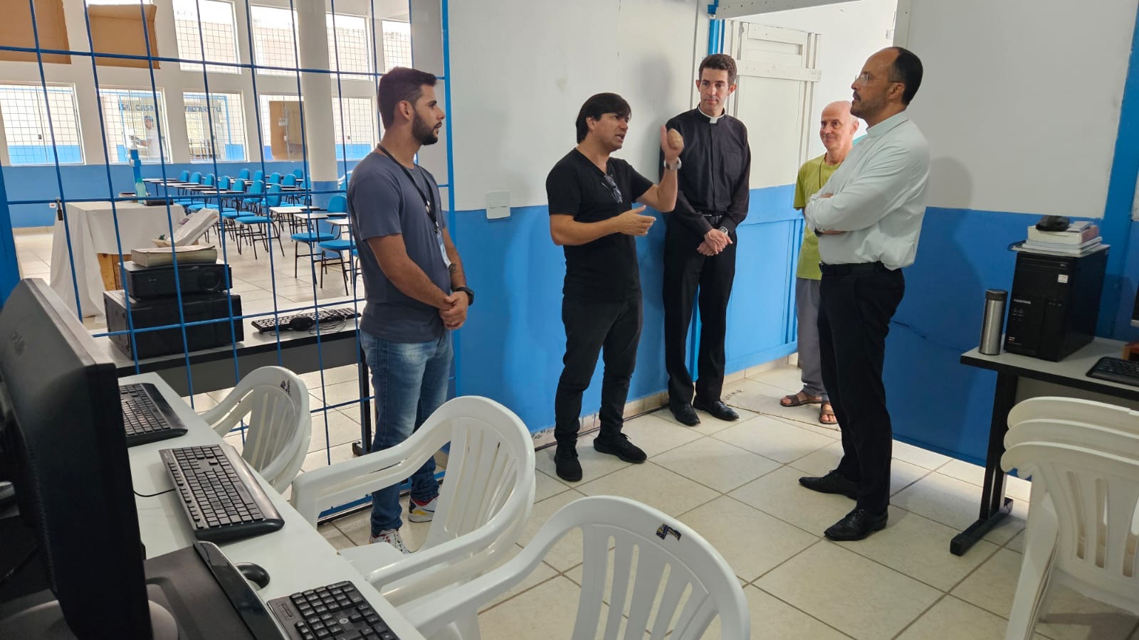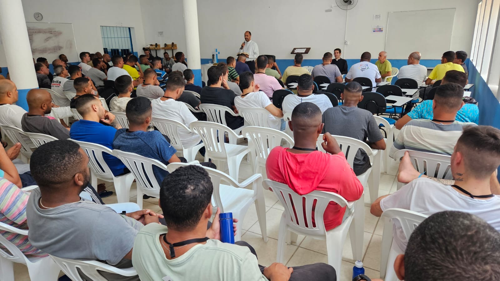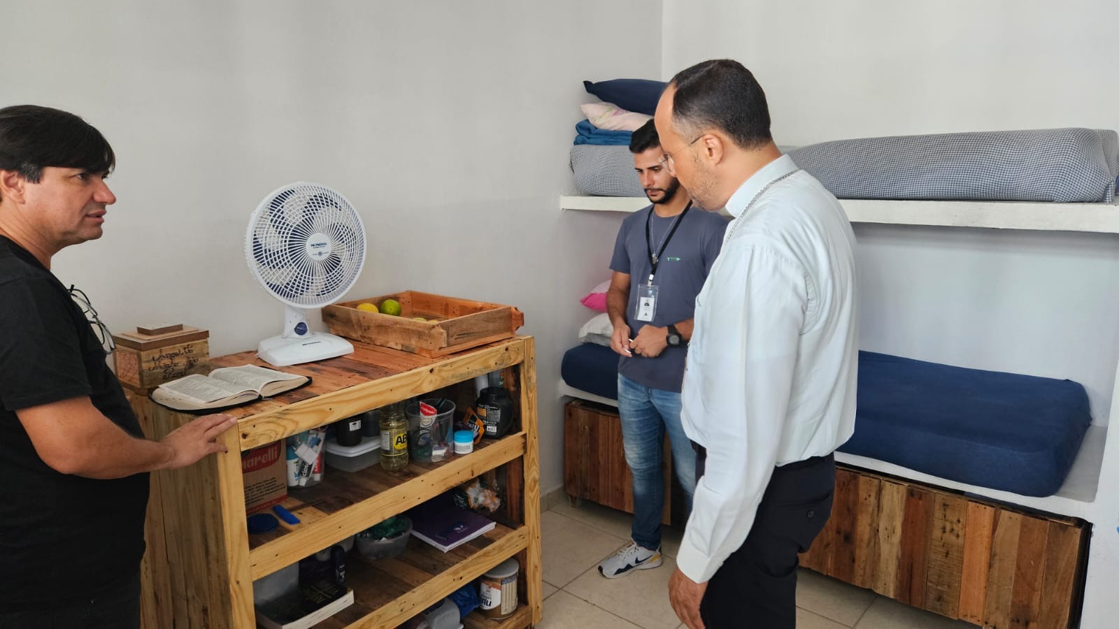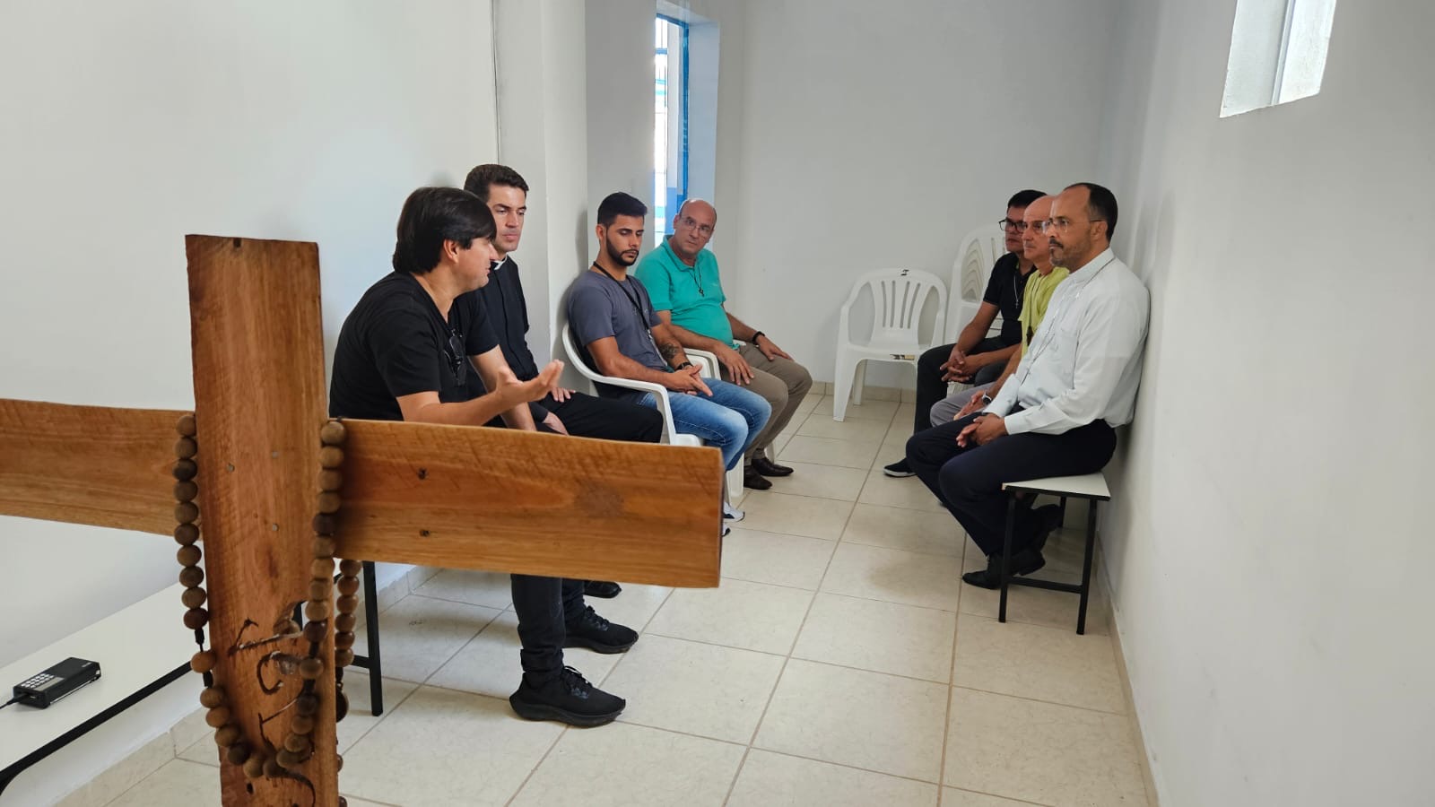 Na manhã de hoje, Dom Geovane, Pe. Anderson, os jovens Max e Eduardo, foram acolhidos pela família Apac. Após visita às dependências da casa, que atualmente acolhe 108 pessoas privadas de liberdade, Dom Geovane dirigiu sua palavra à Diretoria e em seguida encontrou-se com todos os recuperandos que residem naquela comunidade prisional. As visitas têm em vista fortalecer a ação pastoral da Igreja junto aos irmãos e Irmãs encarcerados.