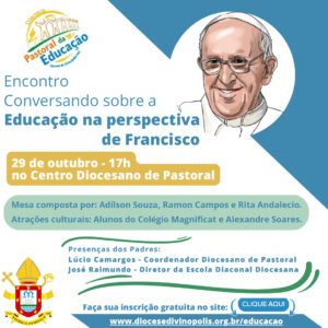 Celebrando o Professor e a Educação, Diaconia e Pastoral da Educação realizará um encontro com o tema: “Conversando sobre A Educação nas perspectivas de Francisco’