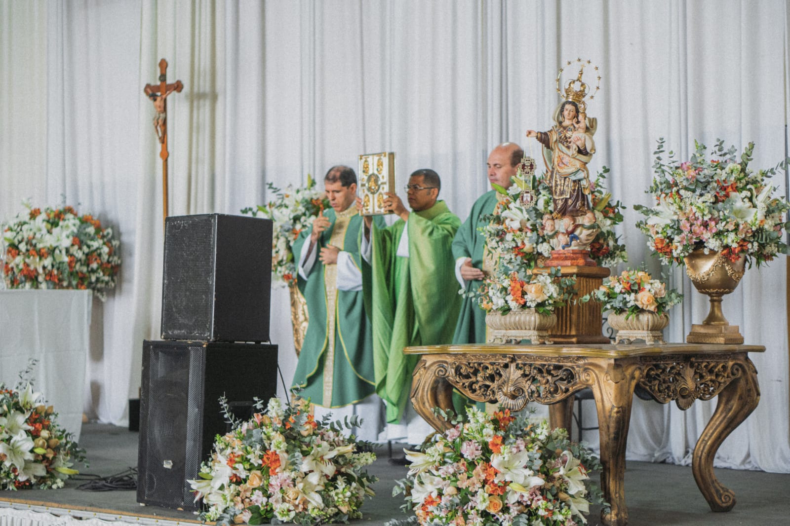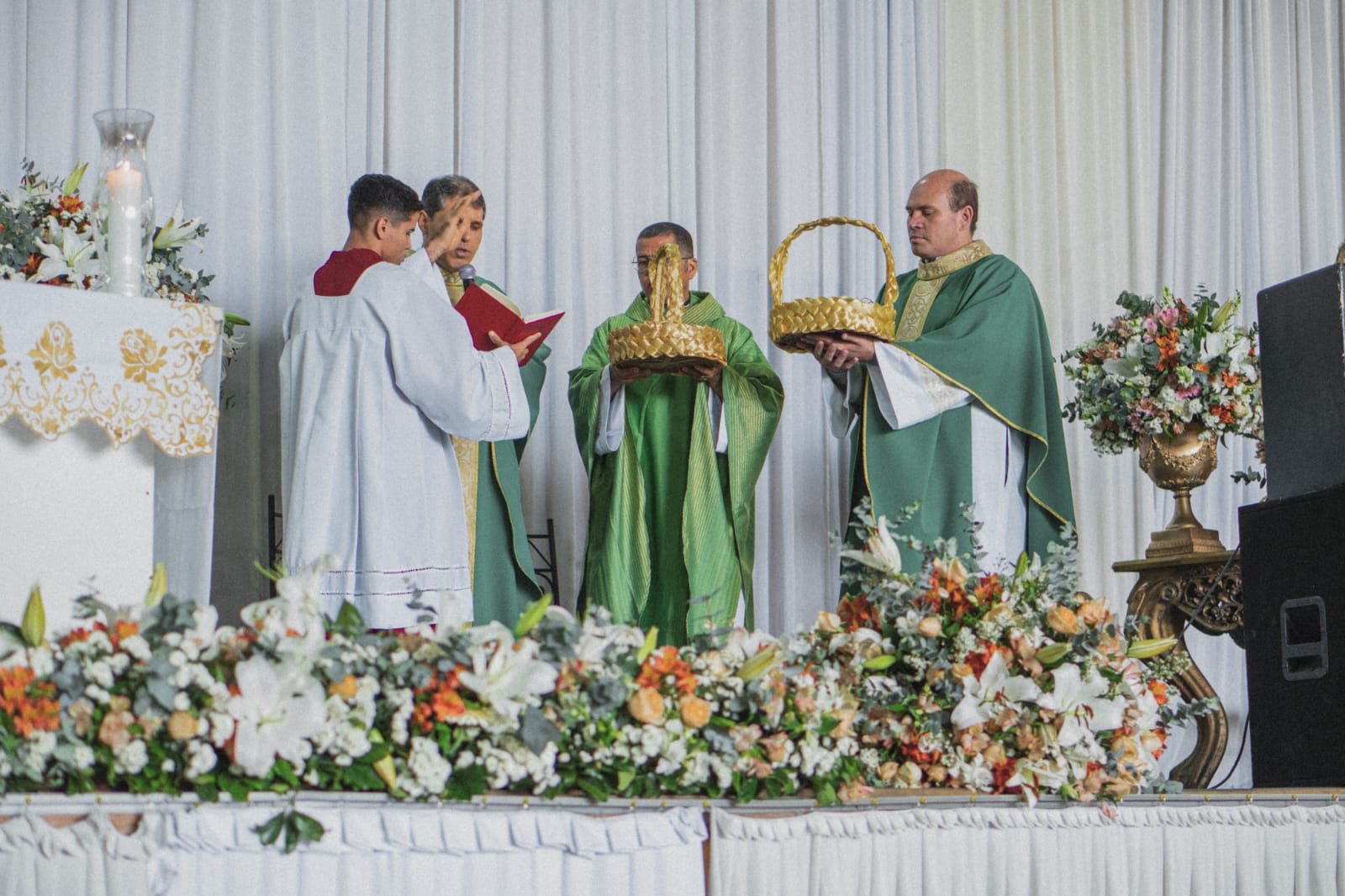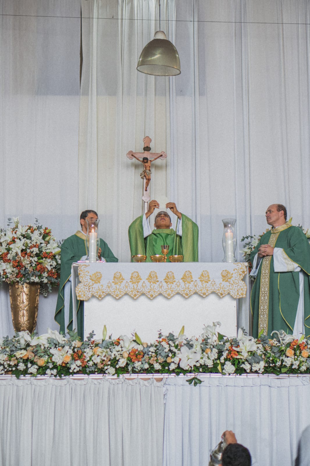 O ponto alto do encontro se deu com a Santa Missa. A celebração, que aconteceu na quadra do Santuário do Senhor Bom Jesus, foi presidida pelo Remo. Sr. Pe. Reginaldo Martins, vigário foraneo e concelebrada por Revmo. Sr. Pe. Ulysses César, da paróquia de São Gonçalo e Revmo. Sr. Pe. Cristiano Alisson.