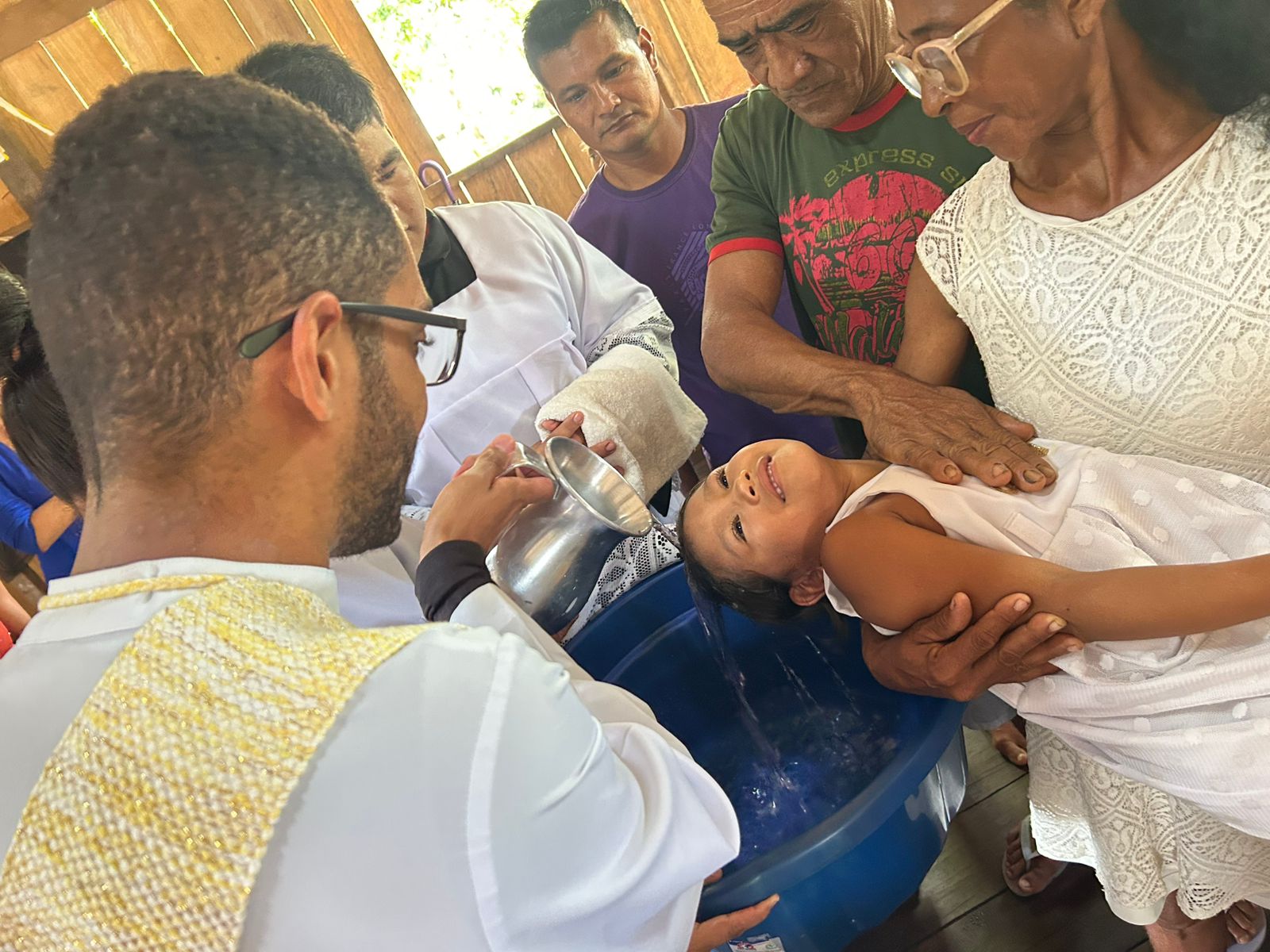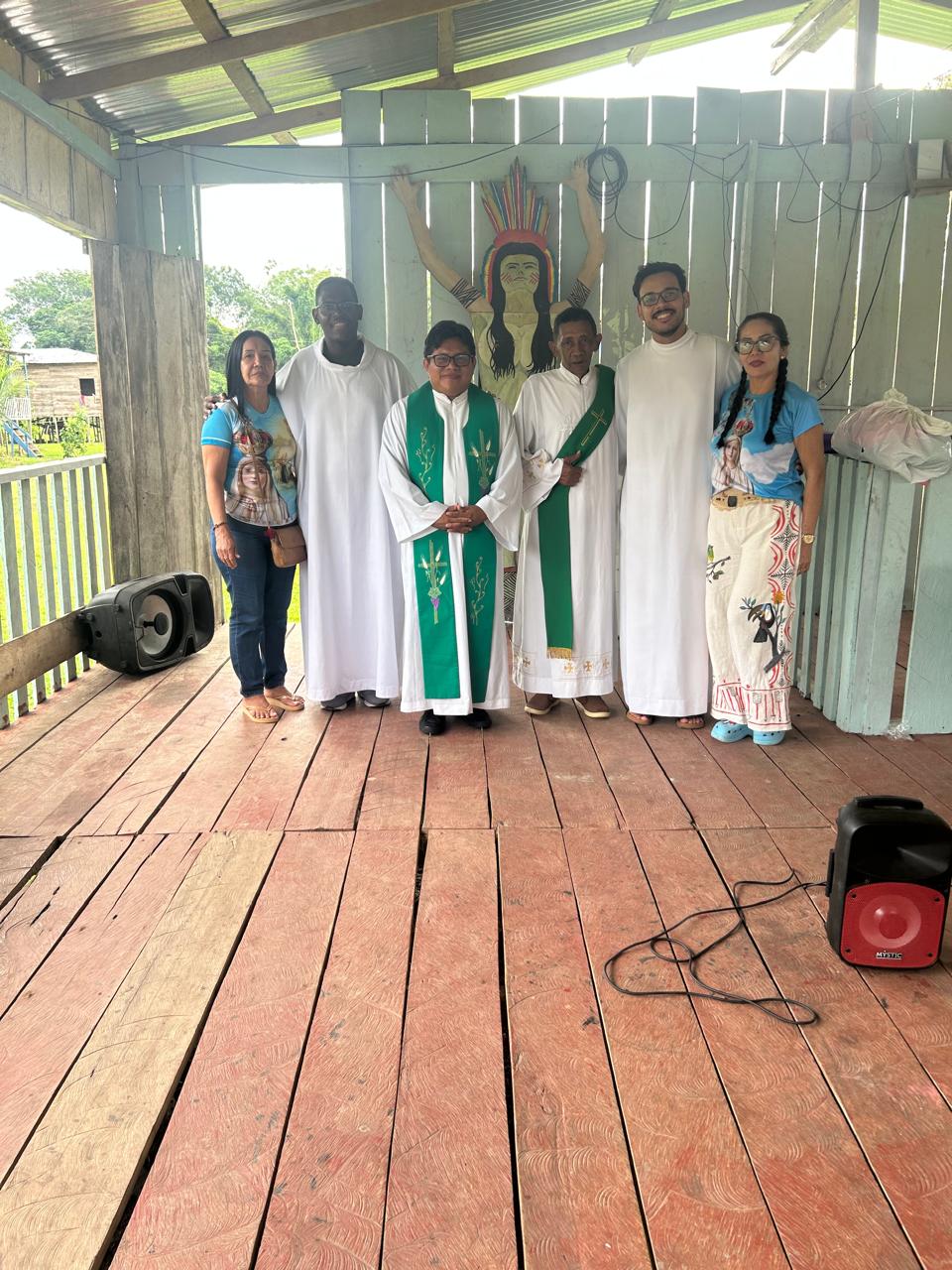 O casal de missionários, Aurélia e Edmilson, junto do Pe. Rafael Costa, foi enviado para a área missionária de Tamaniquá, que fica a cerca de 15 horas de Tefé, subindo o Rio Amazonas de barco. Além da celebração da Eucaristia, do batismo de 36 pessoas nas comunidades ribeirinhas e do Festejo em honra a São Sebastião, padroeiro da comunidade, puderam promover encontros com casais, crianças, juventudes, catequistas, ministros da Palavra e da Comunhão, acólitos e coroinhas.
