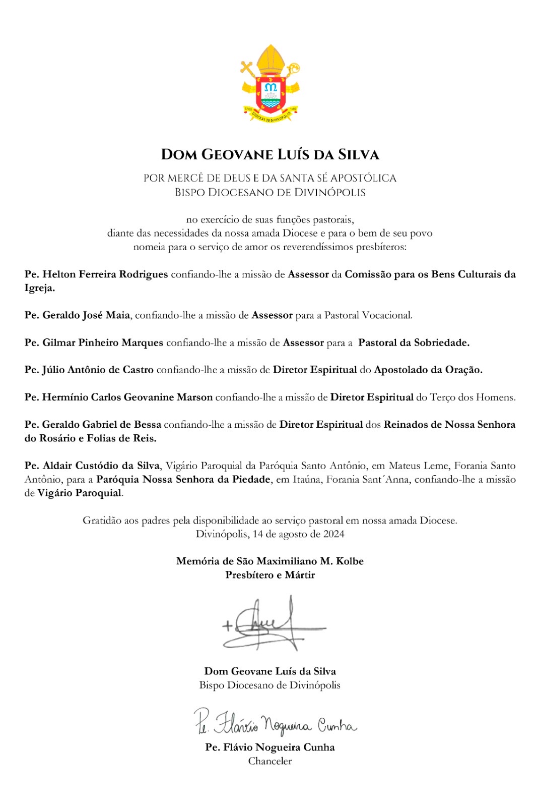 Nomeações e Transferências e Ofícios Diocesanos