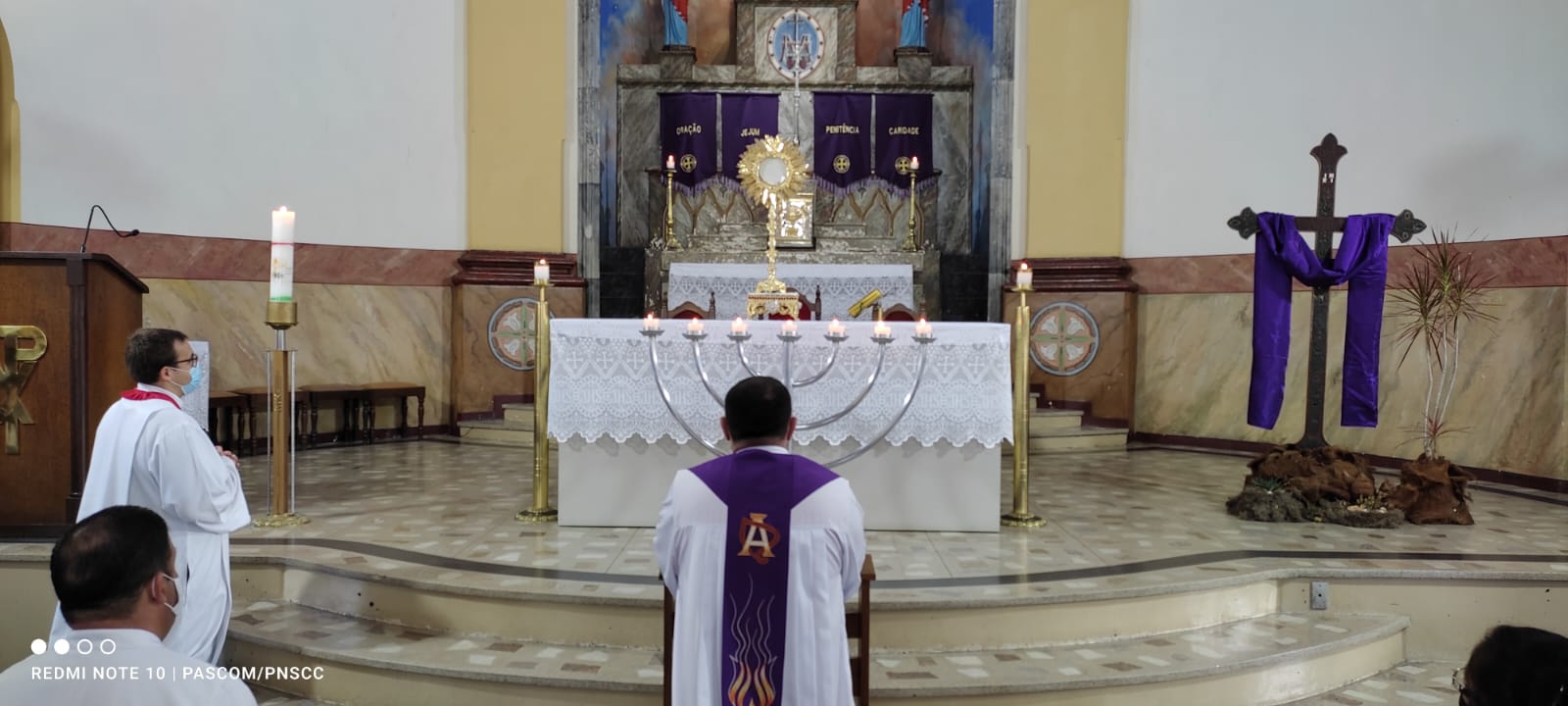 Após a oração das Laudes, Padre Carlos Antônio presidiu a Santa Missa e, após, fez a exposição do Santíssimo Sacramento, conforme o costume em todas as quintas-feiras.