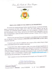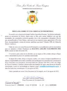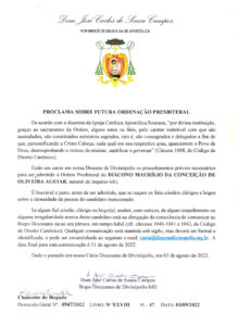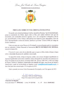 Proclamas para as futuras ordenações diaconais e sacerdotais