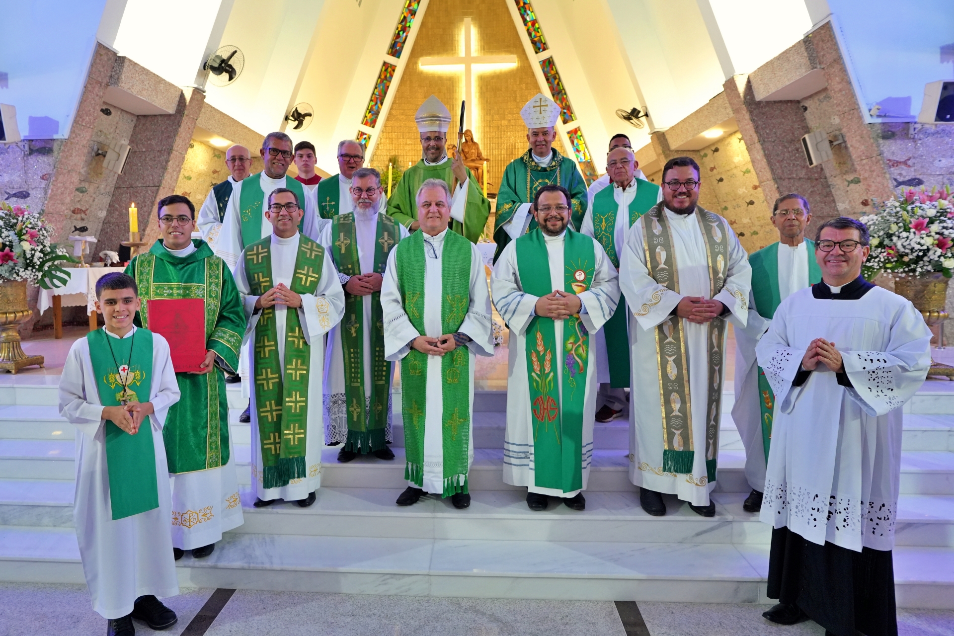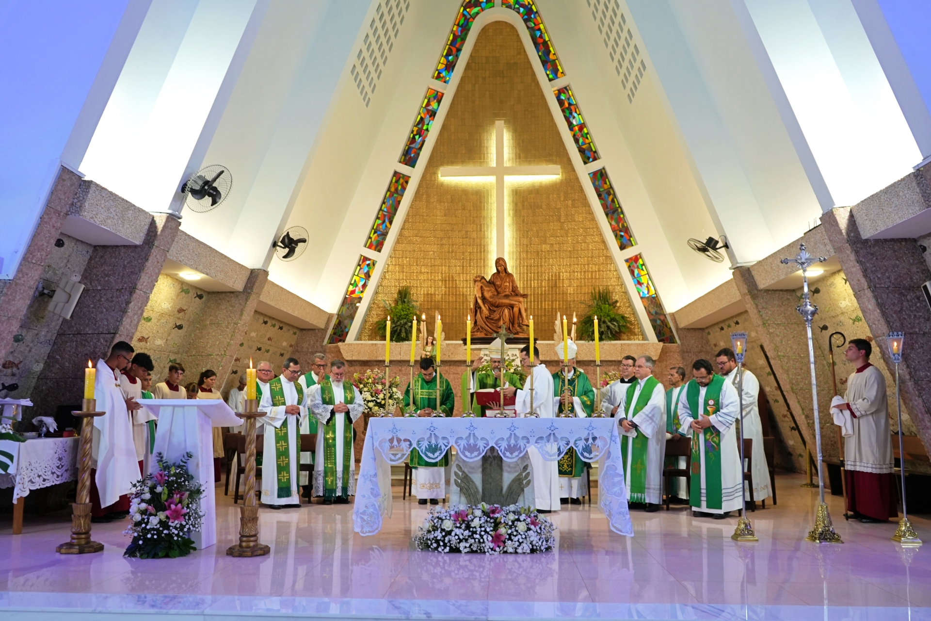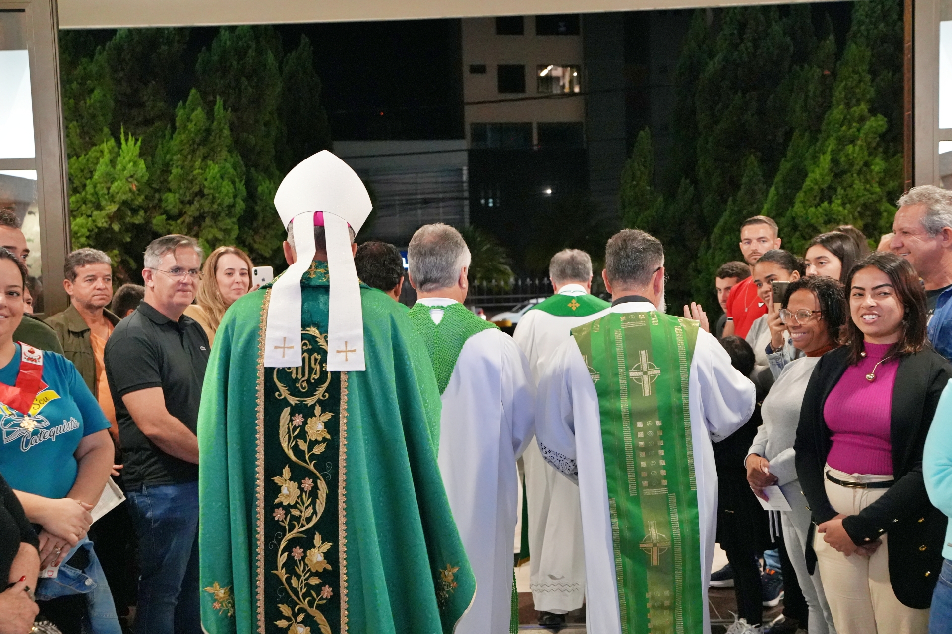 A Santa Missa foi presidida pelo nosso Bispo Diocesano, Dom Geovane Luís, e contou com a presença de Dom José Carlos (Arcebispo de Montes Claros), padres Antônio Carlos Pouza Barbosa e Marcos Antônio de nossa Paróquia, Padre João Luís (Paróquia de São Pedro), Monsenhor Paulo Pereira (Paróquia São Vicente – Divinópolis), Padre Everaldo, Padre Padre Washington Batista, Padre Edmar Antônio (Catedral Divino Espírito Santo – Divinópolis) padres salesianos (Patronato):Padre Dênis, Padre Geraldo, Padre Agnaldo e Padre Oscar, Diácono Jean (Paróquia Santo Antônio)e a participação de alguns seminaristas.