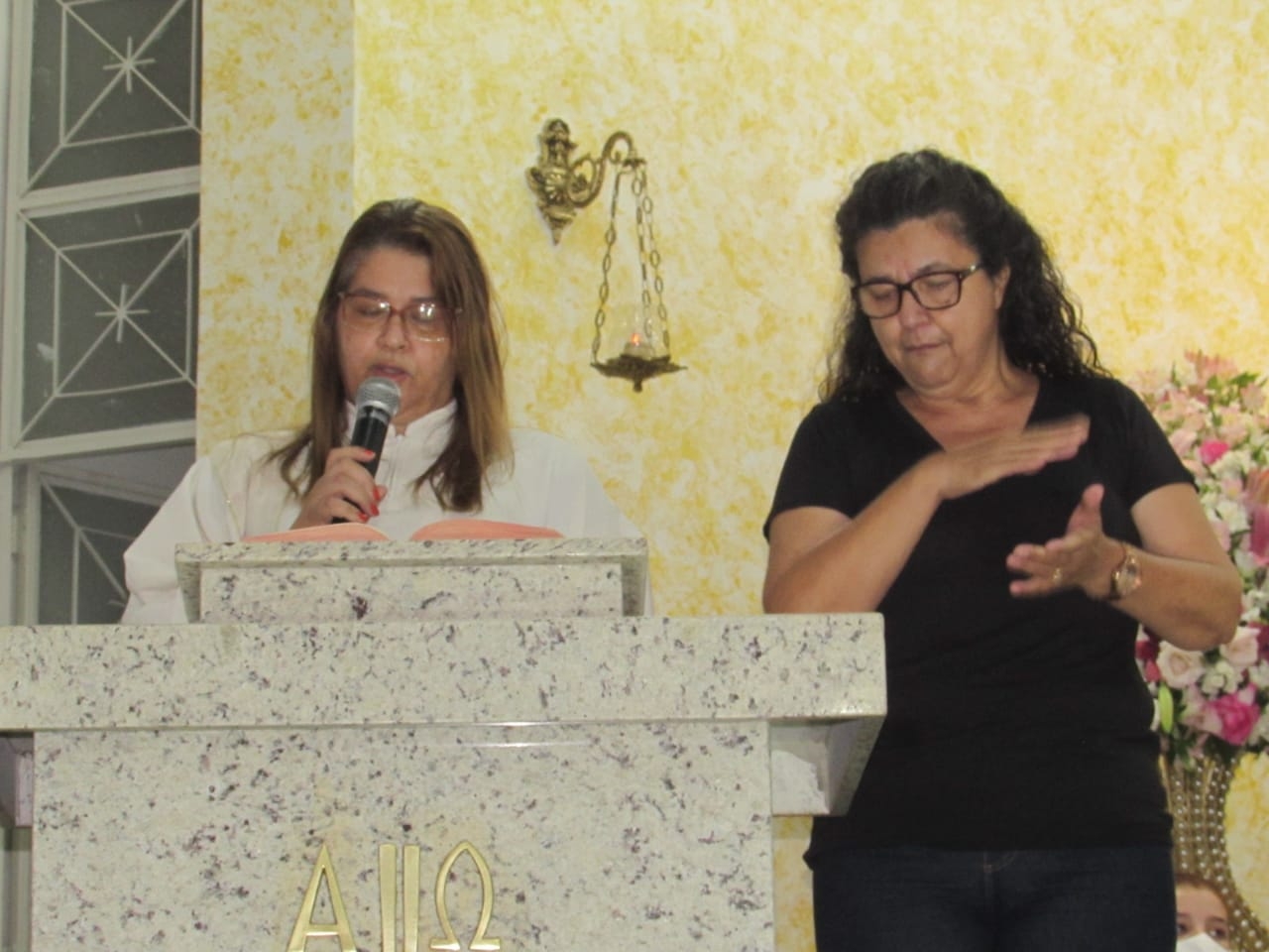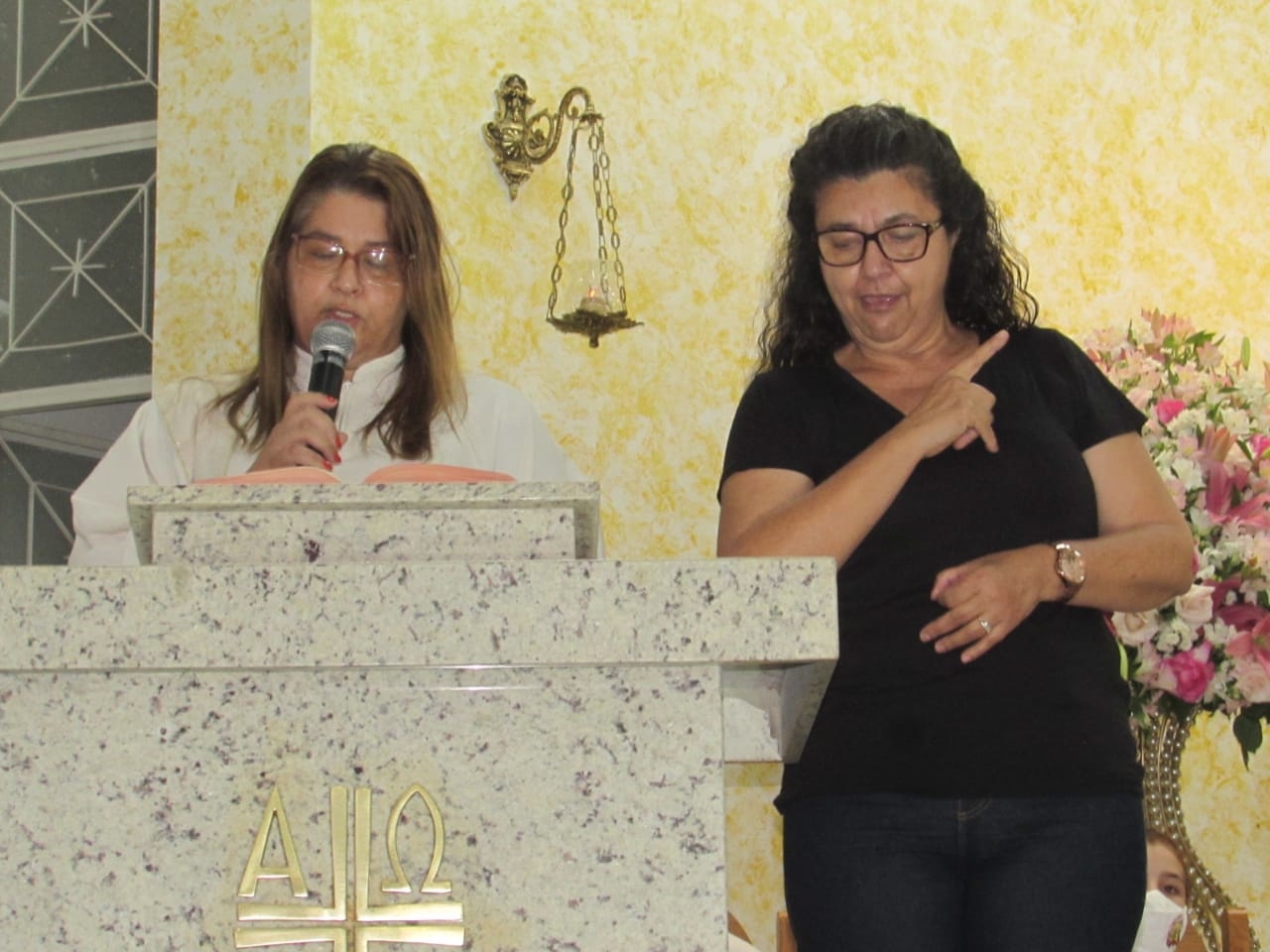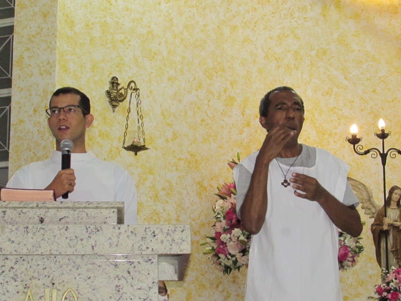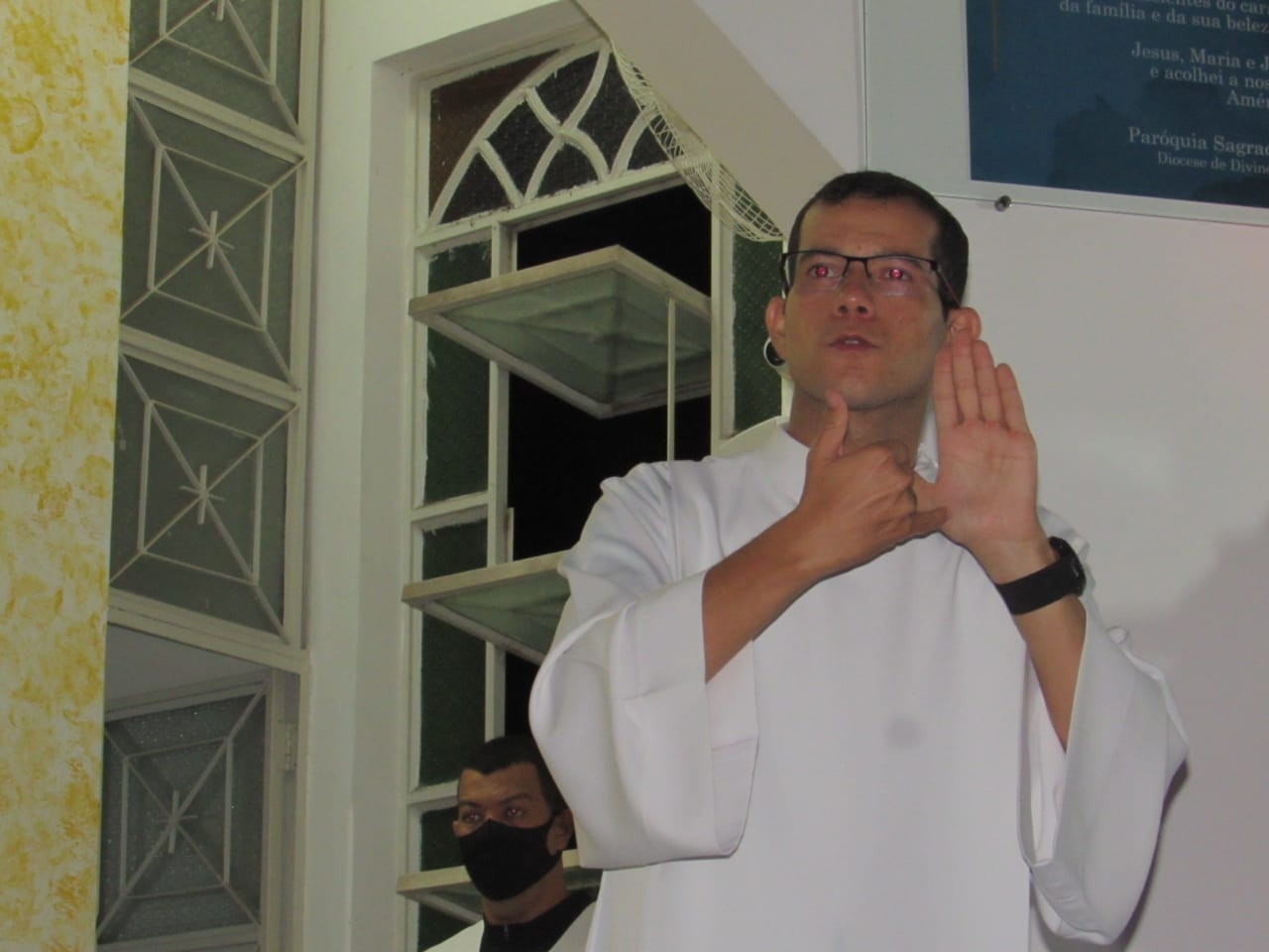 Na Eucaristia, presidida pelo padre Gedler Breves, os surdos da  pastoral participaram da equipe de liturgia, apresentando à comunidade uma nova forma de expressão. As leituras, lidas em Libras, eram, simultaneamente, traduzidas para o Português. Participaram da comunhão em duas espécies ( hostia e vinho) e rezaram uma Ave Maria junto com toda a comunidade.